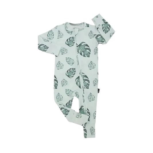 Belan.J footless sleeper in electric blue with long sleeves, front zipper, and fold-over cuffs, shown on white background.