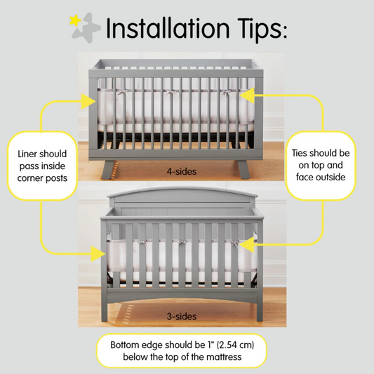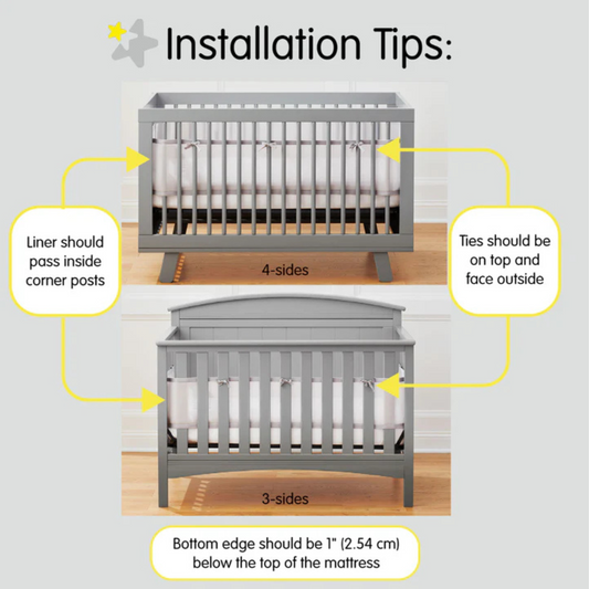 Easy Installation: Each crib bumper is designed for easy installation and secure fit. They come with adjustable ties or fasteners that ensure the bumper stays in place, providing consistent protection for your baby.