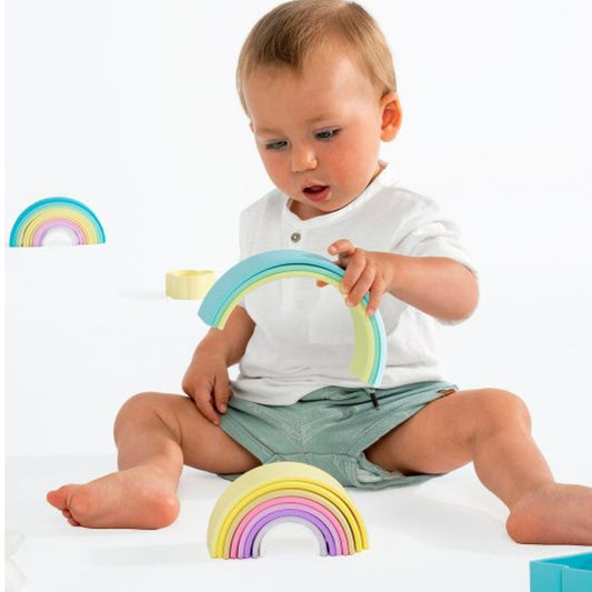 Add a splash of color and creativity to your child's playtime with the Dena Rainbow Collection, now available at Kido Bébé. This delightful collection is designed to inspire your child's imagination while supporting their motor skill development—all through vibrant, safe, and engaging toys. Collection Highlights: Imaginative Stacking and Building Fun: The Dena Rainbow toy isn’t just visually captivating with its bright, joyful colors—it’s a fantastic tool for encouraging your little one’s creativity. Whether they're stacking, building, or coming up with their imaginative play scenarios, this toy helps develop fine motor skills and hand-eye coordination in the most playful way possible. Soft and Soothing Pastel Animals: These gentle pastel-colored animals are as comforting as they are cute. Made from soft, food-grade silicone, they’re perfect for teething babies and soothing those sore gums. With their calming colors and soft texture, these toys are ideal companions for both energetic playtime and quiet, soothing moments. Endless Play Possibilities: The beauty of this Collection lies in its versatility. These baby toys are designed for open-ended play, meaning your child can use them in countless ways, sparking endless hours of fun and creativity. Plus, they’re easy to clean and durable enough to withstand the rough and tumble of daily play. Ready to turn everyday play into a colorful adventure? Discover the beautiful collection at Kido Bébé—where fun meets safety, and every toy is crafted with love for your little one.
