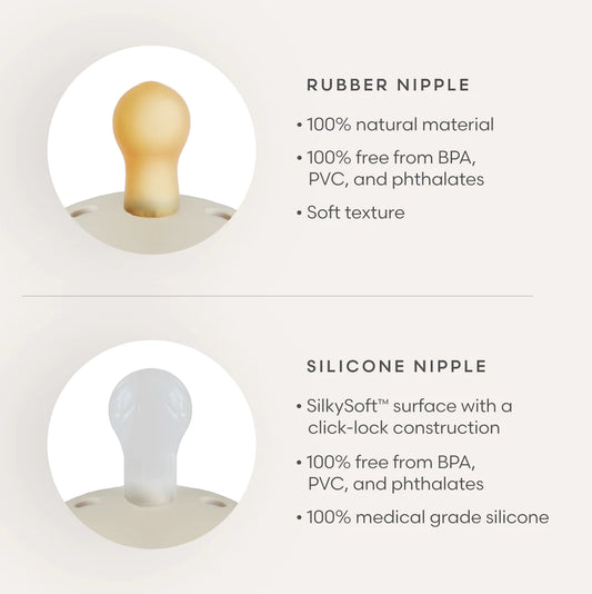 It's important to choose a baby pacifier that not only fosters peaceful, connected moments but also promotes calm for your little one. We at Kido Bébé understand how precious that tranquil, comforting time is. That’s why we’ve curated a selection of the best pacifiers that combine love, care, and the highest safety standards. Each product in our collection is crafted from soft, safe materials like natural latex and medical-grade silicone, designed to withstand the typical mishaps of childhood while keeping your baby comfortable and secure.