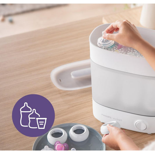 Effective Sterilization: Our baby bottle sterilizer options use steam or UV light to eliminate 99.9% of germs and bacteria, providing a safe and hygienic feeding experience for your baby. The advanced sterilization process ensures thorough cleaning without the need for harsh chemicals.
