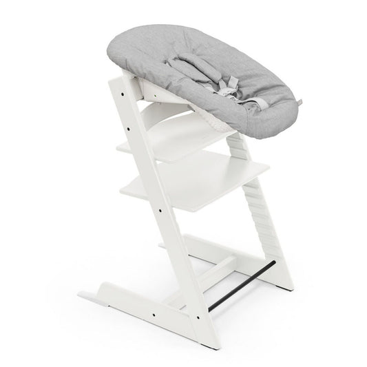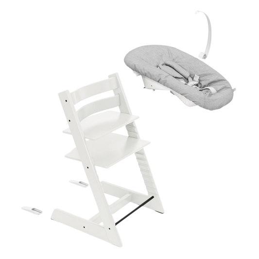 The Stokke Newborn Set is an attachment for the Tripp Trapp® chair, designed to allow newborns to join family mealtimes from birth. It is a reclined, cushioned seat that securely attaches to the chair, keeping your baby at table height. This encourages early bonding and allows parents to interact with their babies during meals, conversations, or daily activities.