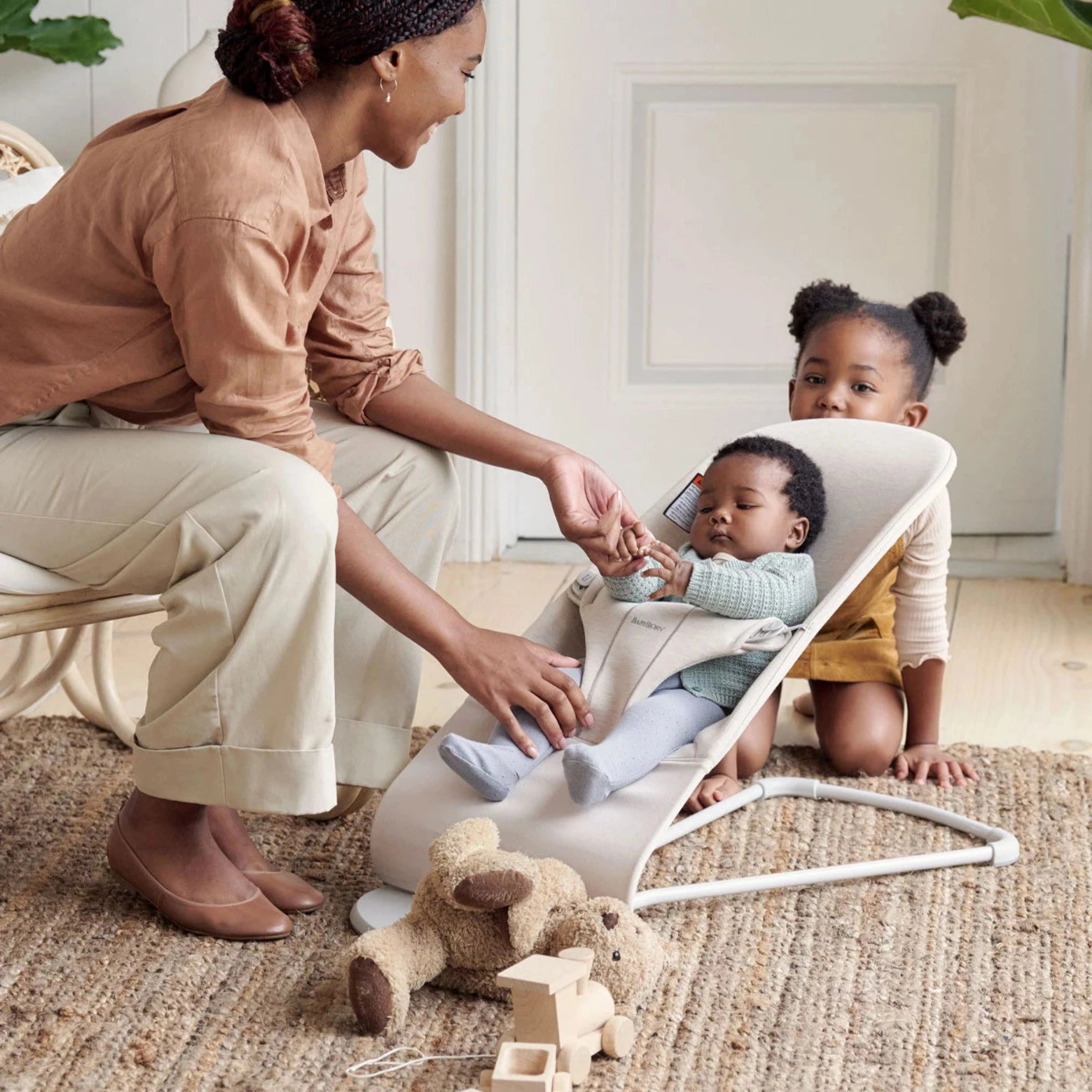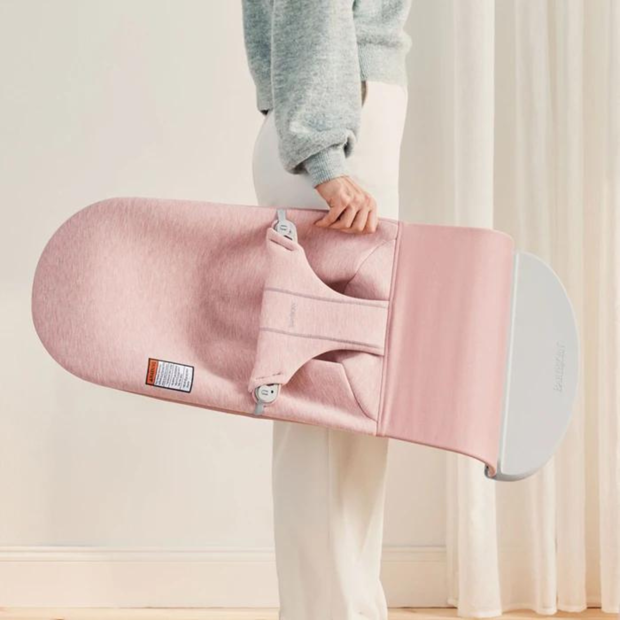 Le transat Bliss s'intègre parfaitement aux intérieurs modernes grâce à son design épuré et ses lignes douces. Son cadre en métal est assorti à une teinte douce. Il se distingue par son jersey 3D ultra-doux et son coton matelassé douillet. Il est également disponible en maille douce et aérée, avec des coutures intégrées pour éviter les irritations de la peau sensible de votre bébé. Par ailleurs, tous les transats BABYBJÖRN présentent le même design de base : un mouvement de bascule naturel, trois positions différentes et un siège ergonomique en tissu sur mesure. Ils sont tous pliables, dotés d'un tissu amovible et lavable en machine, et offrent une longue durée de vie (0 à 2 ans).