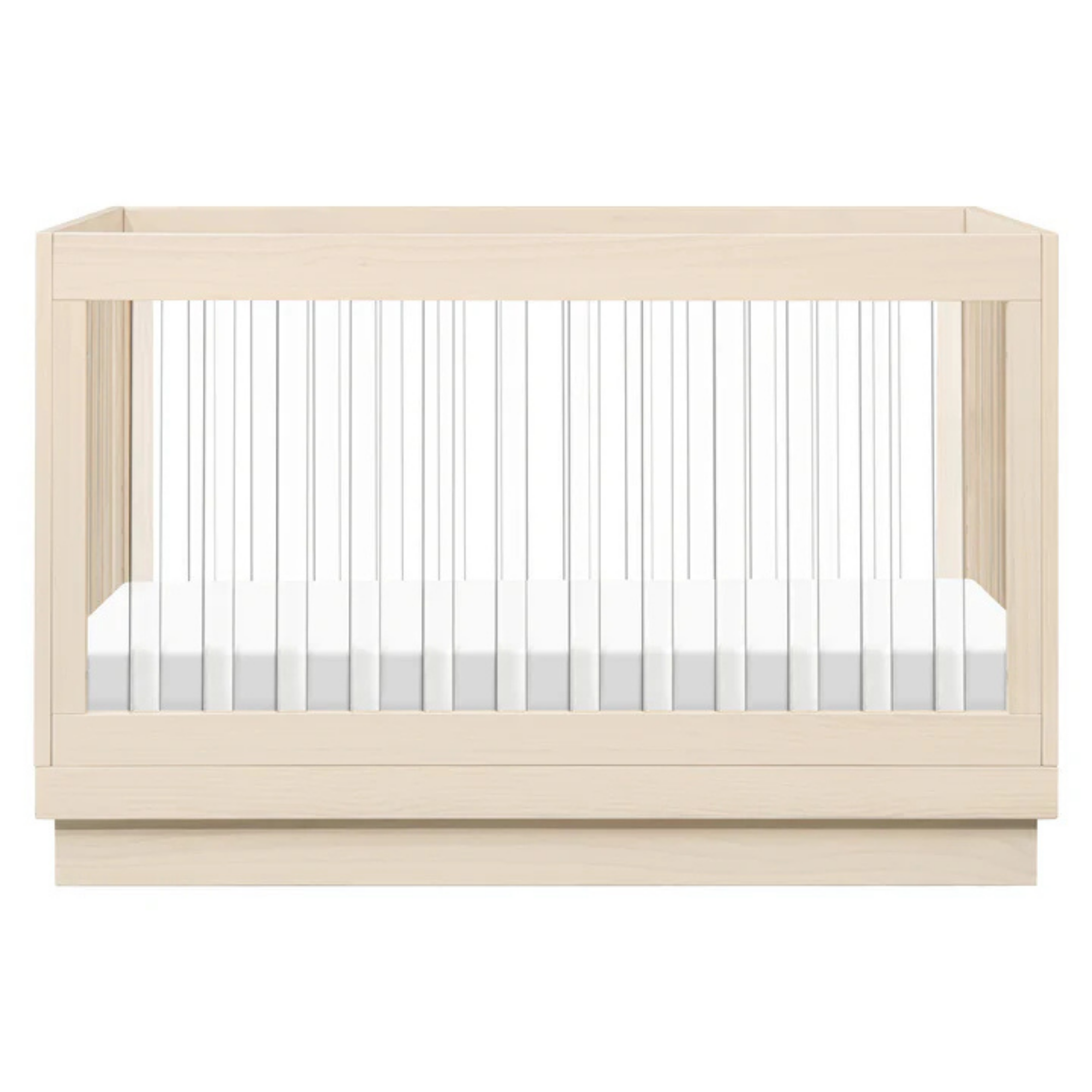 - CONCEPTION MODERNE AVEC VUE DÉGAGÉE : Le berceau chic Harlow vous offre une vue dégagée sur bébé avec des lattes acryliques uniques sur une plate-forme en bois de pin massif contrastée.