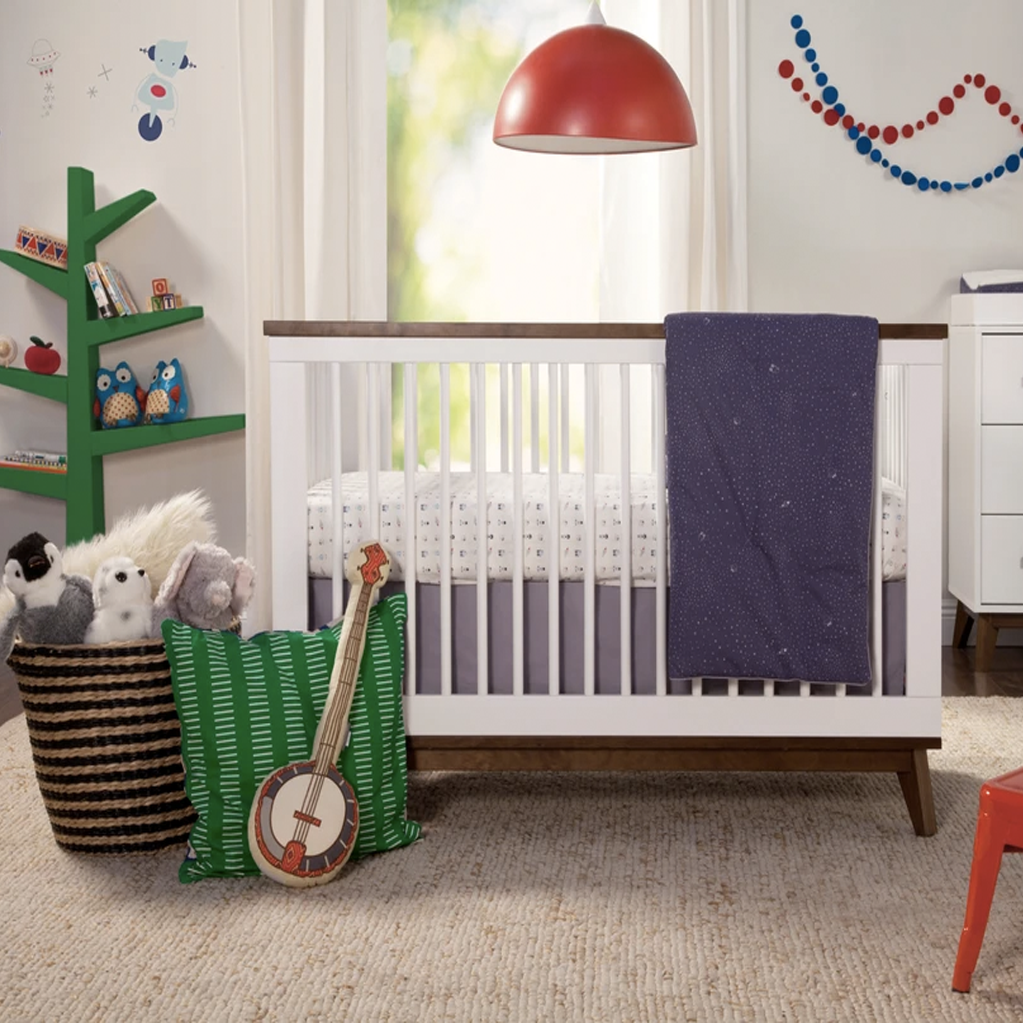 Ce lit bébé élégant allie un style moderne du milieu du siècle à une esthétique contemporaine. Sa structure robuste en pin de Nouvelle-Zélande se transforme en lit de jour ou en lit d'enfant sans aucun achat supplémentaire. Ses pieds légèrement effilés, son design discret et sa finition bicolore rehaussent encore son design élégant. Comme de nombreux produits Babyletto, le Scoot est fabriqué avec des matériaux respectueux de l'environnement.