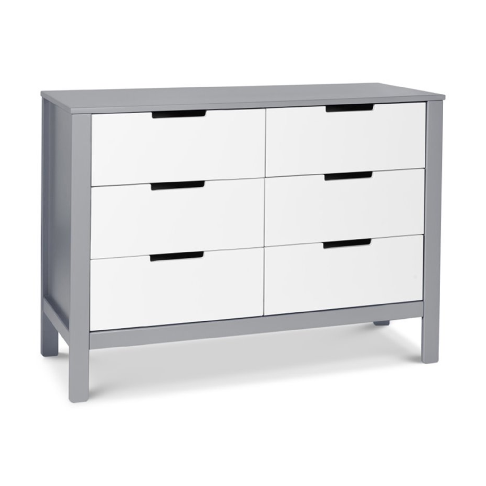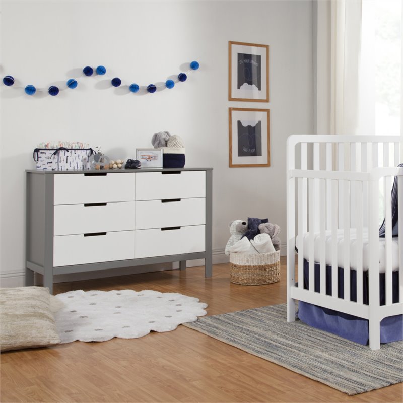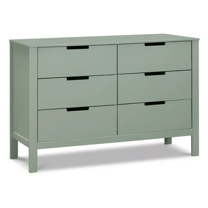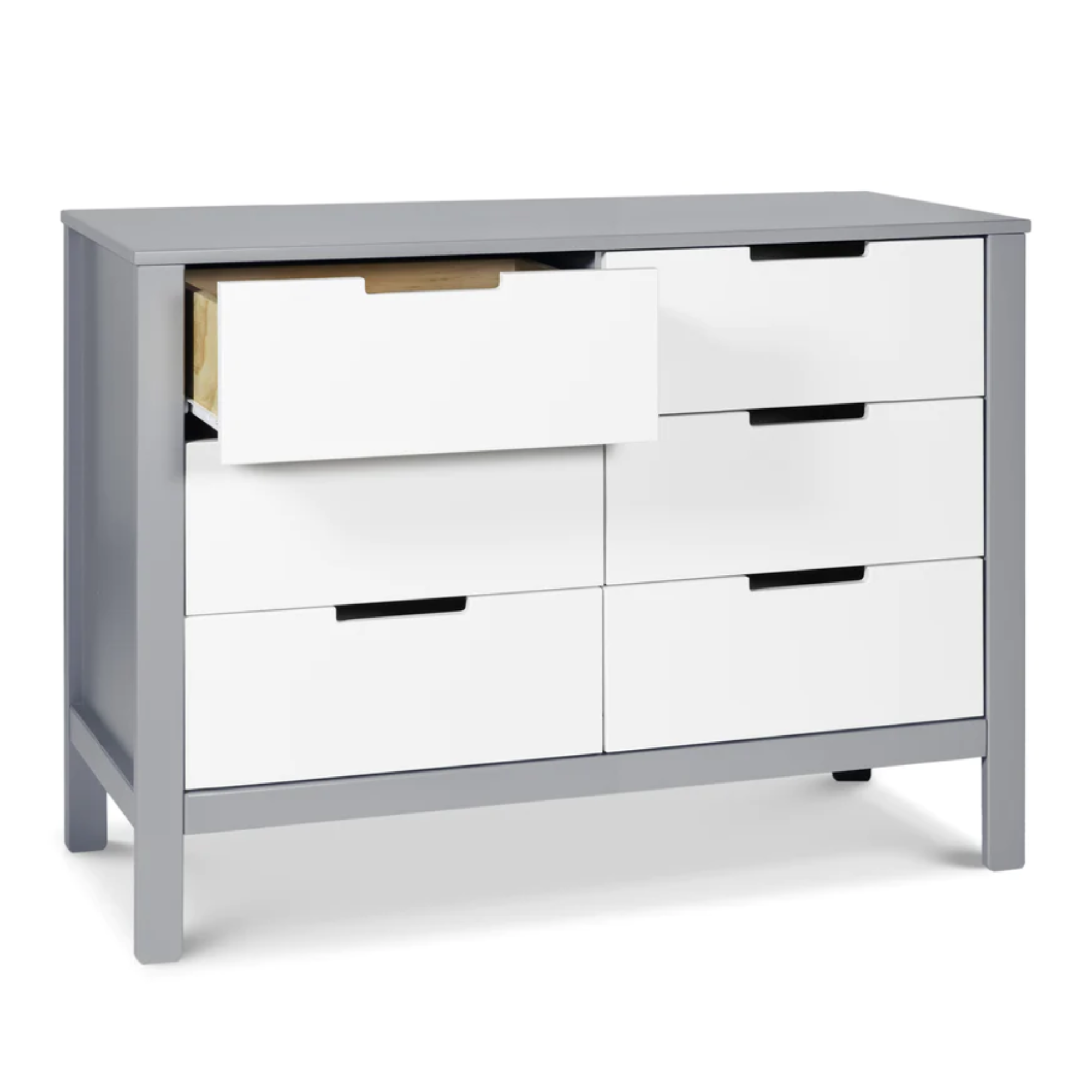 La commode 6 tiroirs Colby de Carter's présente six tiroirs spacieux avec poignées ouvertes et un style épuré et moderne. Elle est assortie au lit de bébé Colby et à la commode 3 tiroirs Colby de Carter's.