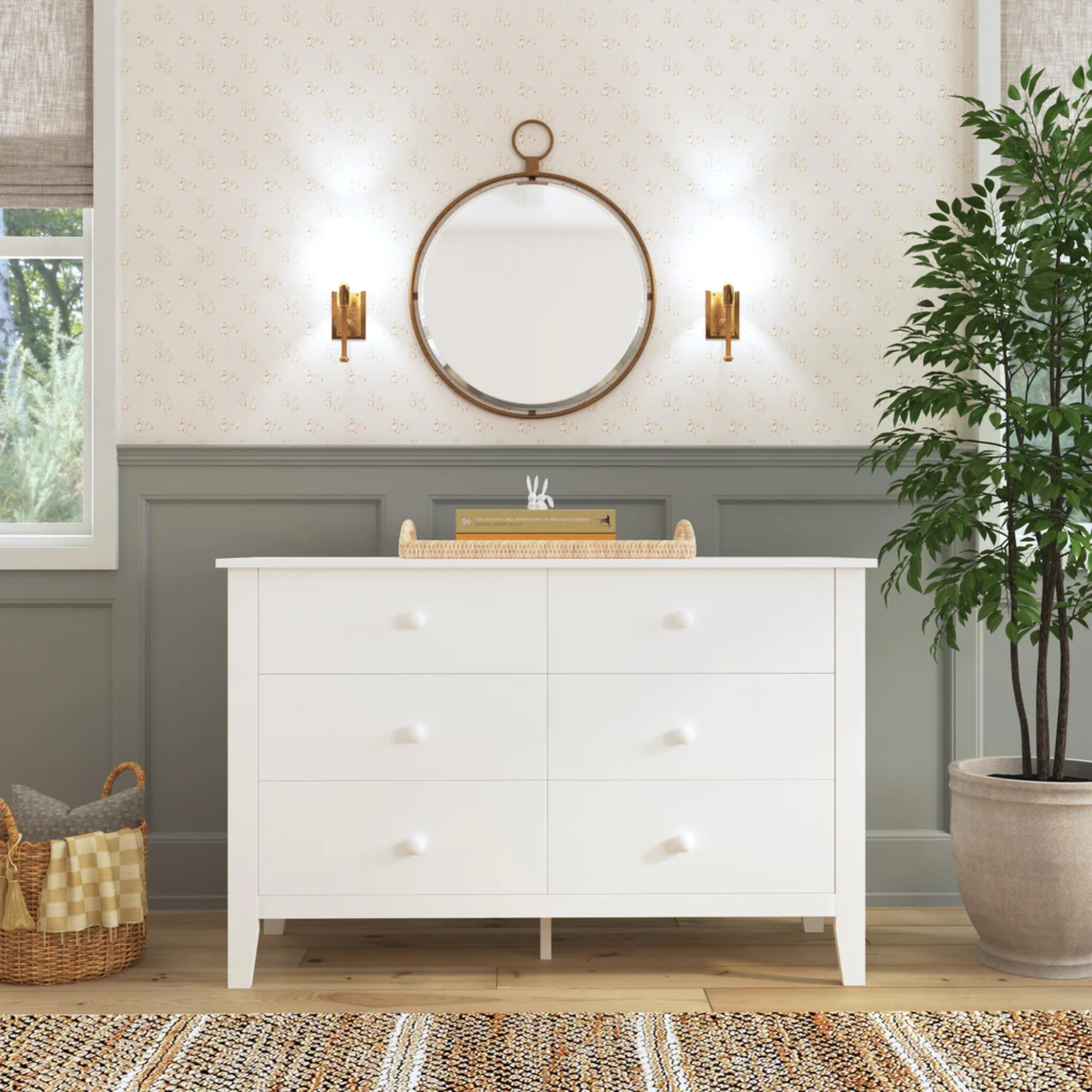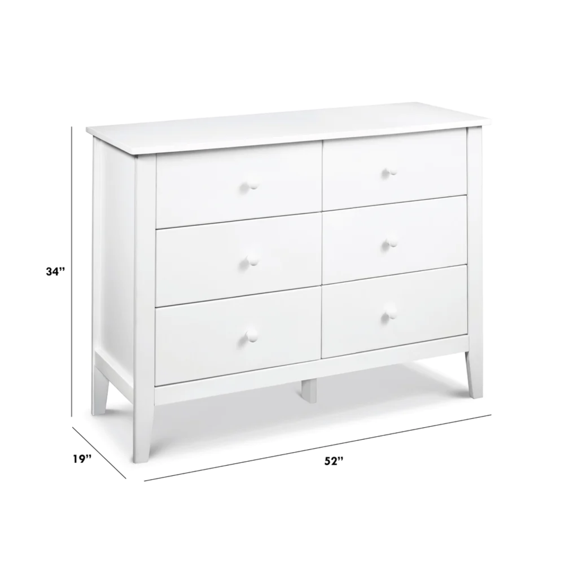Dotée de tiroirs spacieux et de poignées en bois, la commode 6 tiroirs Morgan de Carter's s'intègre parfaitement à toute chambre d'enfant. Elle est assortie au berceau Morgan et à la commode 3 tiroirs Morgan de Carter's.