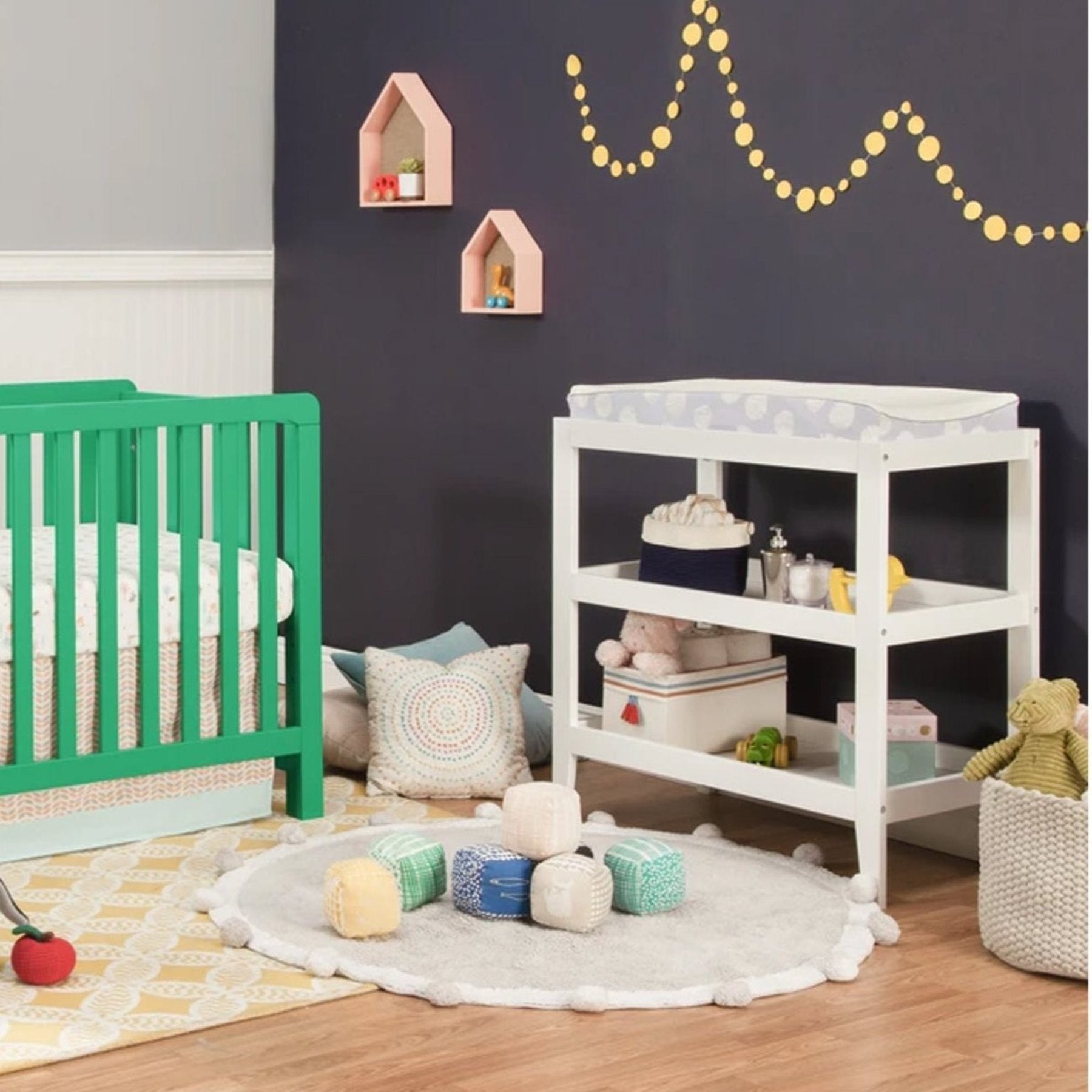 La table à langer Colby de Carter's présente un design universel et des lignes épurées qui s'intègrent à tous les styles de chambre d'enfant. Fabriquée à partir de matériaux non toxiques, sa construction robuste assure à bébé un repos sûr et confortable pendant le change. Son design polyvalent comprend un plateau intégré pour un matelas à langer et deux étagères spacieuses pour ranger tout le nécessaire de bébé. Elle est assortie au lit bébé Colby, à la commode 3 tiroirs Colby et à la commode double 6 tiroirs Colby de Carter's.