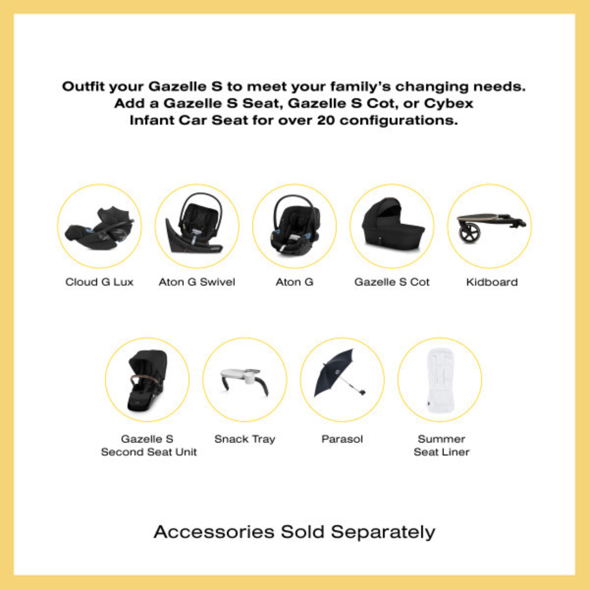 - Avec des possibilités d'installation pratiquement infinies, la Cybex Gazelle S 2 est la poussette familiale qui a toujours une solution.