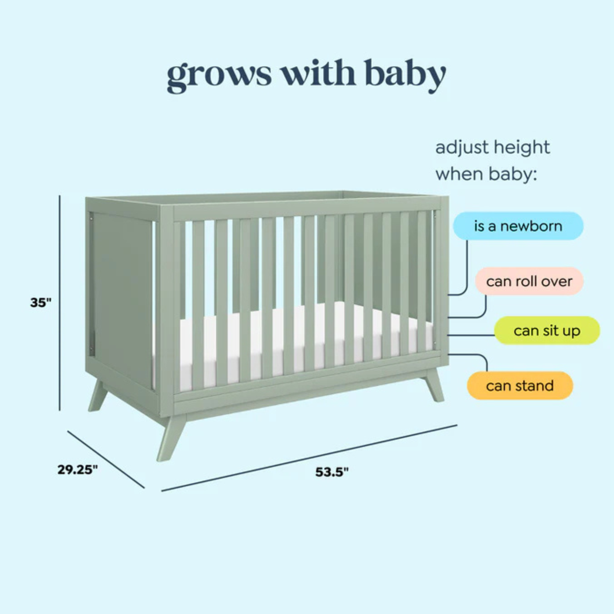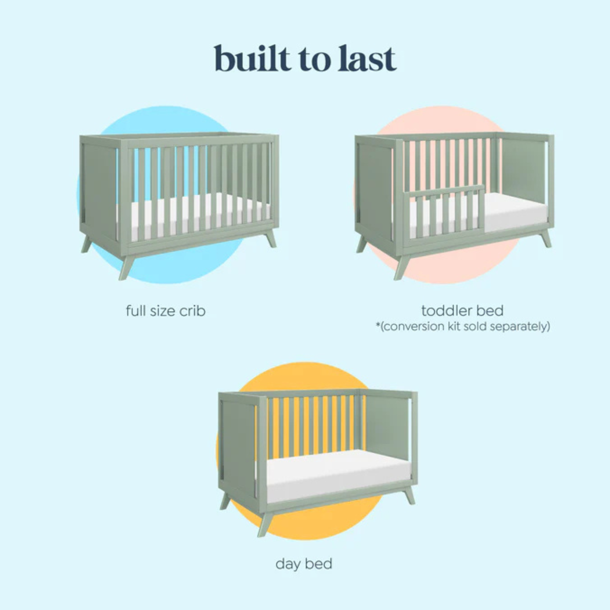 Ce lit bébé incarne le design intemporel du milieu du siècle avec ses lignes épurées, ses pieds évasés et ses lattes en bois massif. Conçu pour s'adapter parfaitement aux besoins du nouveau-né comme de l'enfant, il propose quatre hauteurs de matelas différentes et se transforme facilement en lit d'enfant et en lit de repos. Il s'agence avec la table à langer convertible Otto et la bibliothèque Cubby pour une chambre d'enfant élégante et moderne.