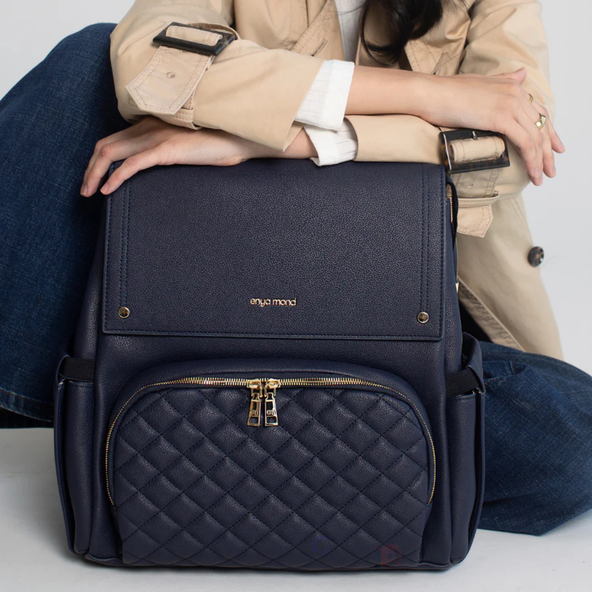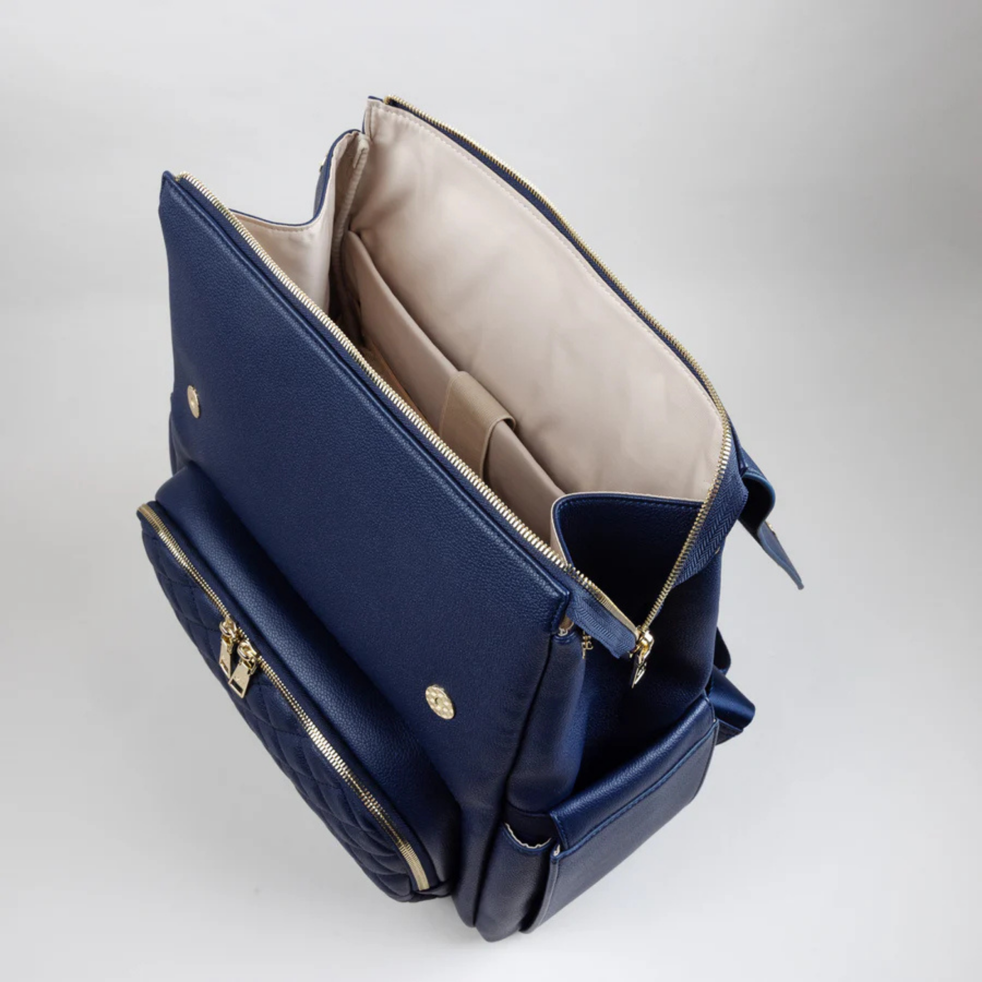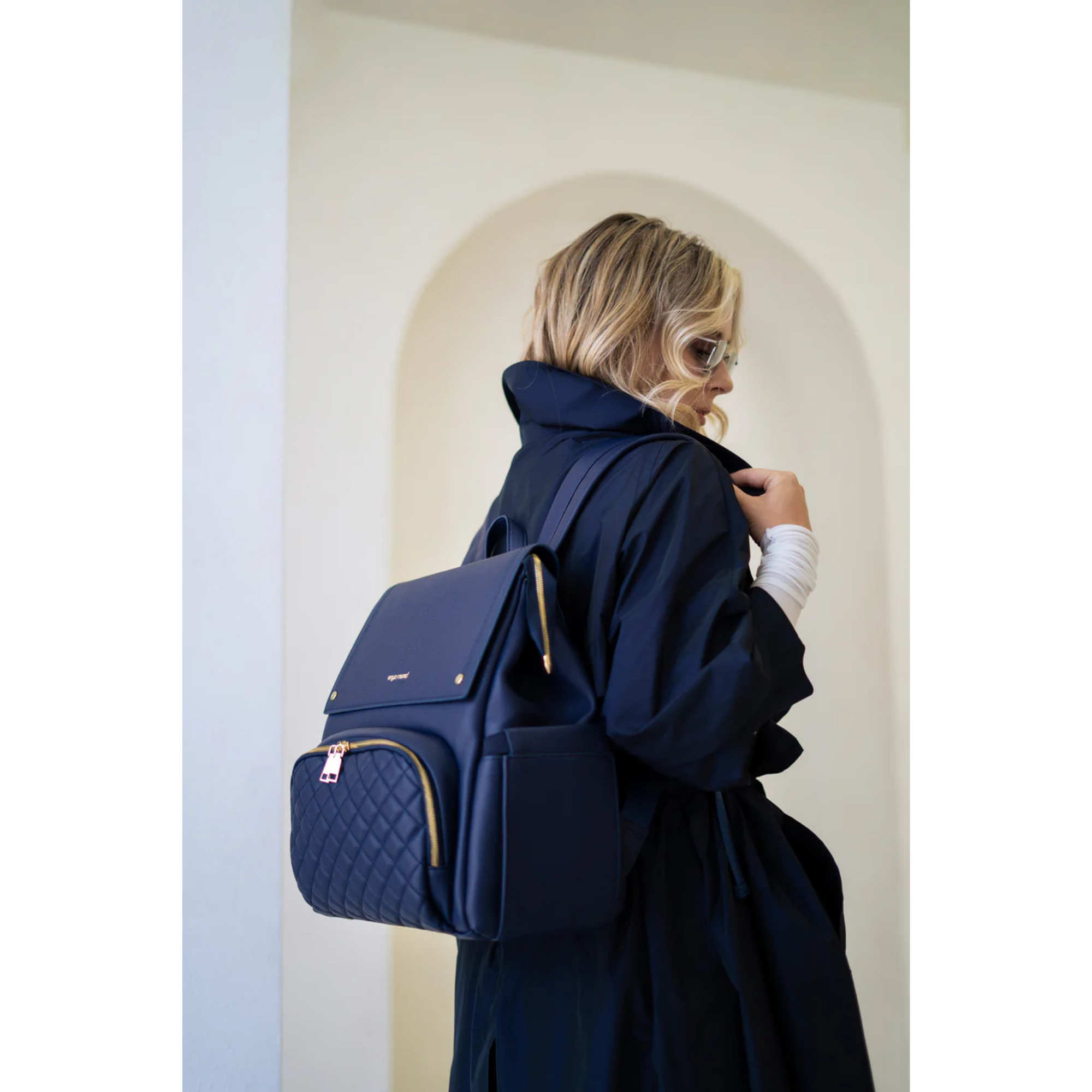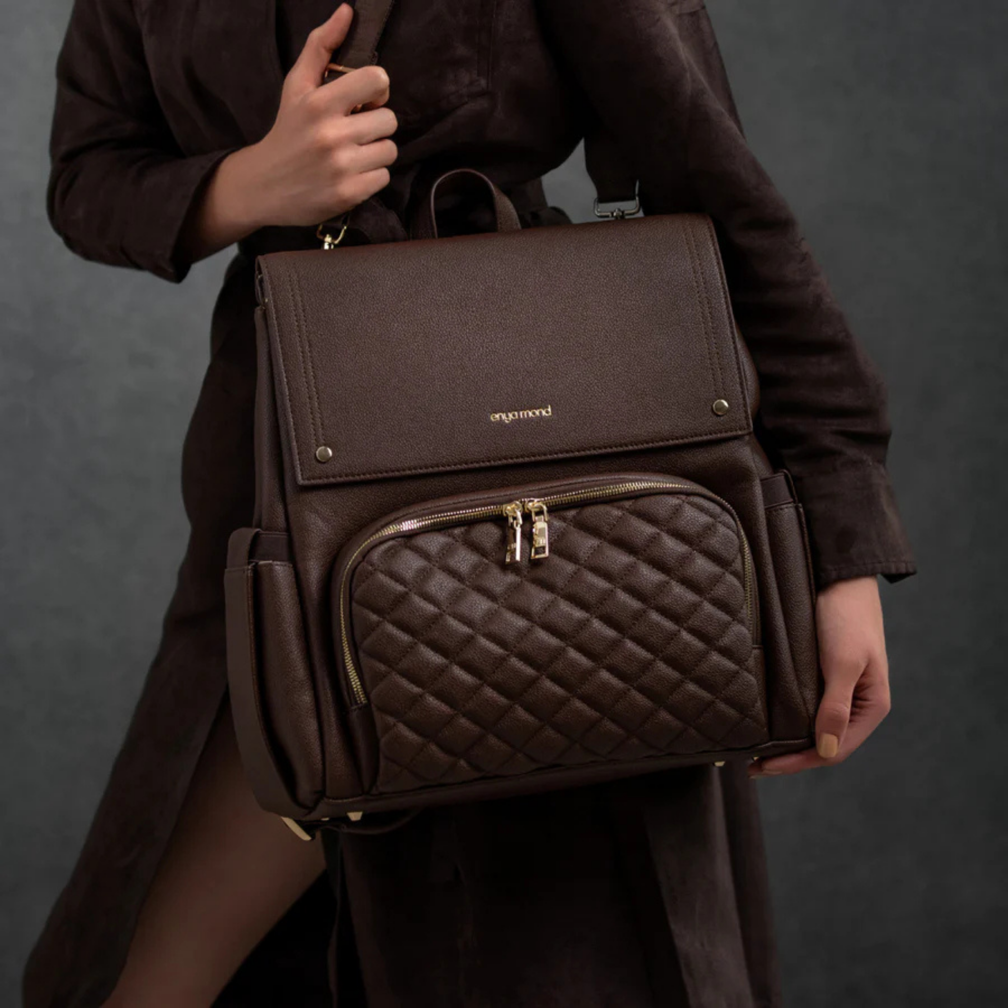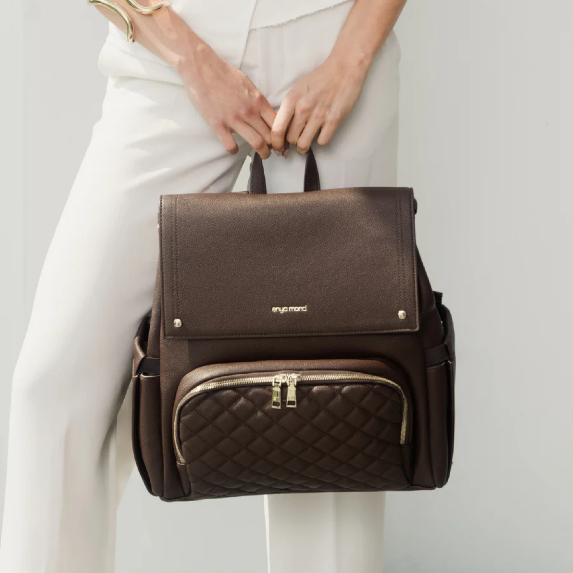 Confectionné en cuir végan haut de gamme à la finition grainée raffinée, le sac Luna respire l'élégance. Chaque détail témoigne de sa qualité, des fermetures éclair de qualité supérieure aux finitions dorées ornées du logo personnalisé. Et pour les petits accidents du quotidien ? Sa doublure imperméable vous protège efficacement.