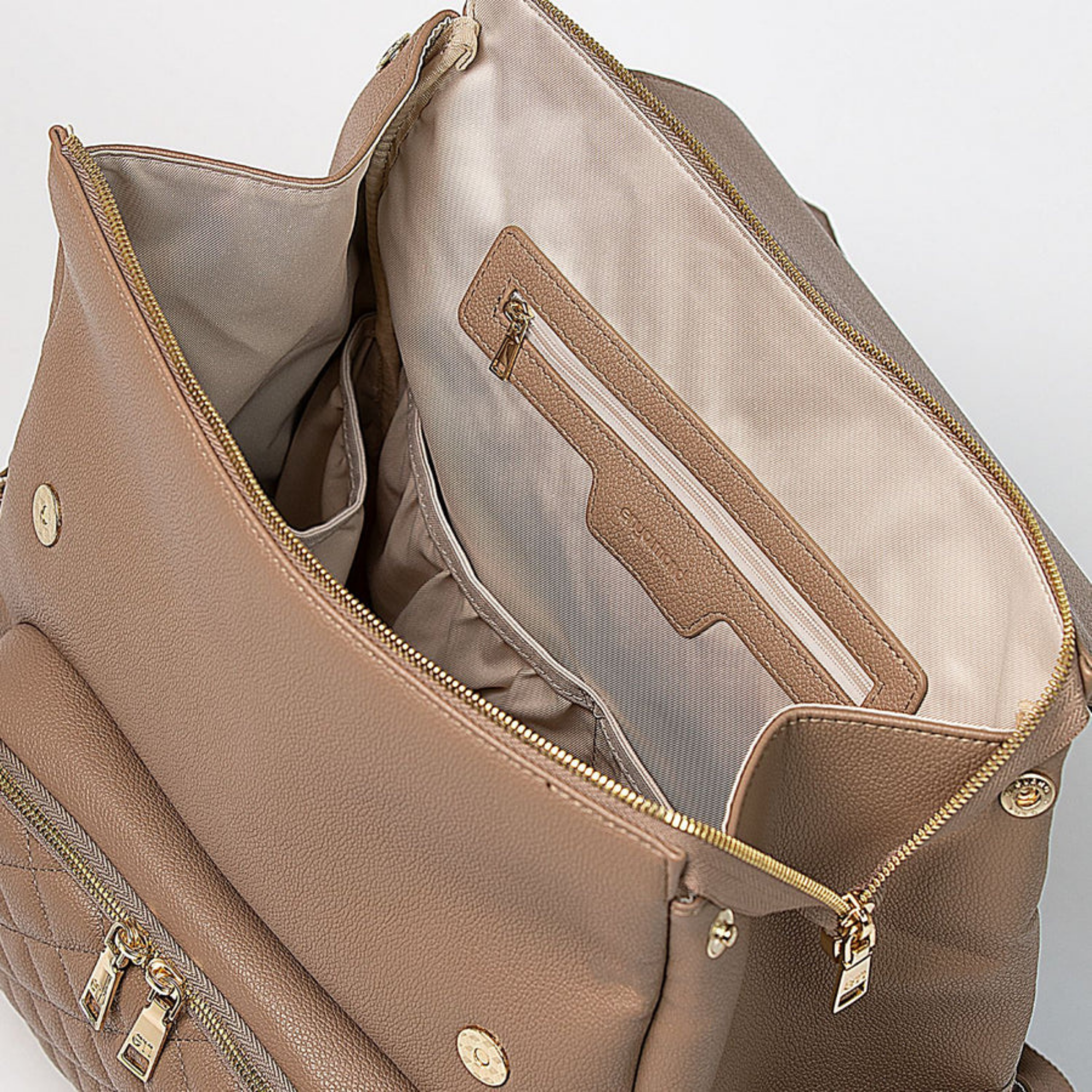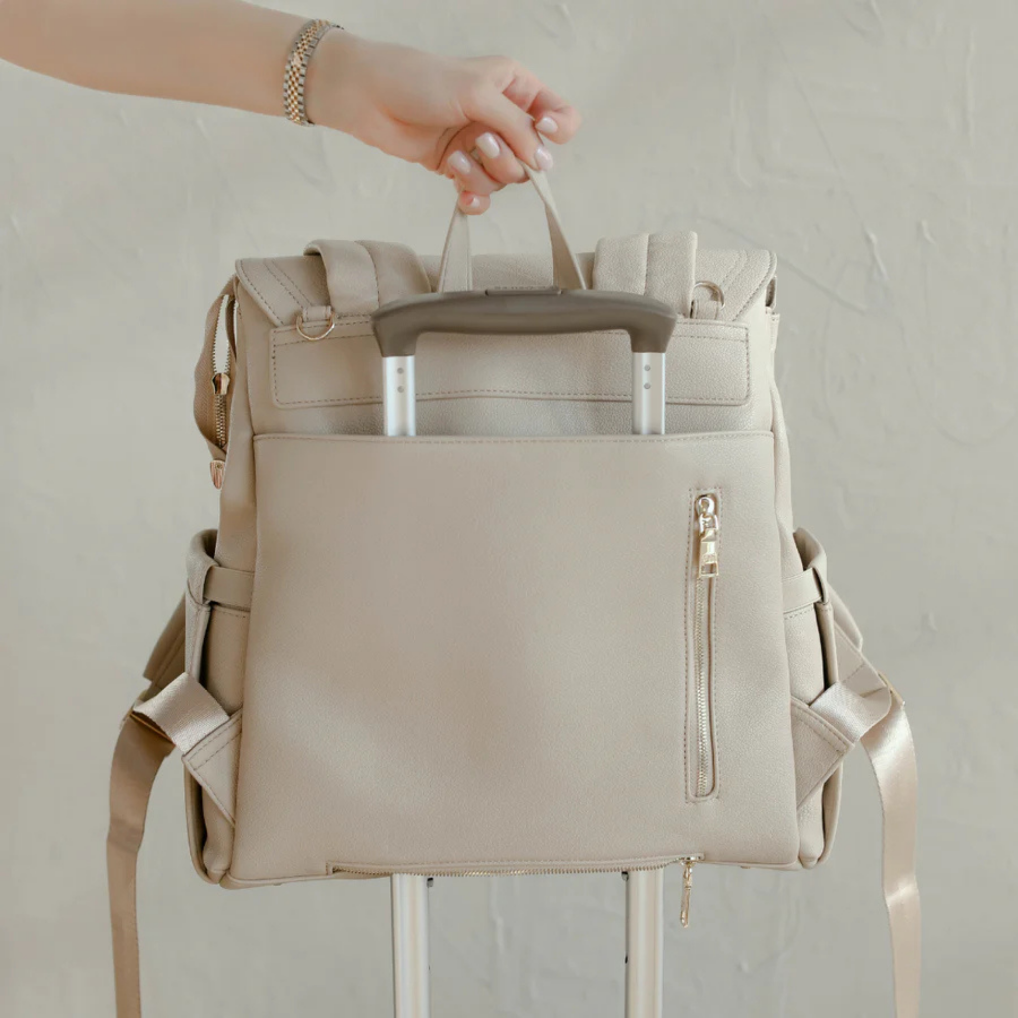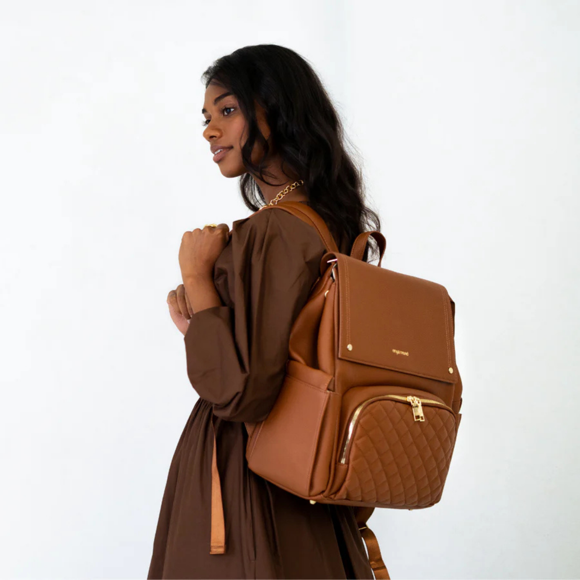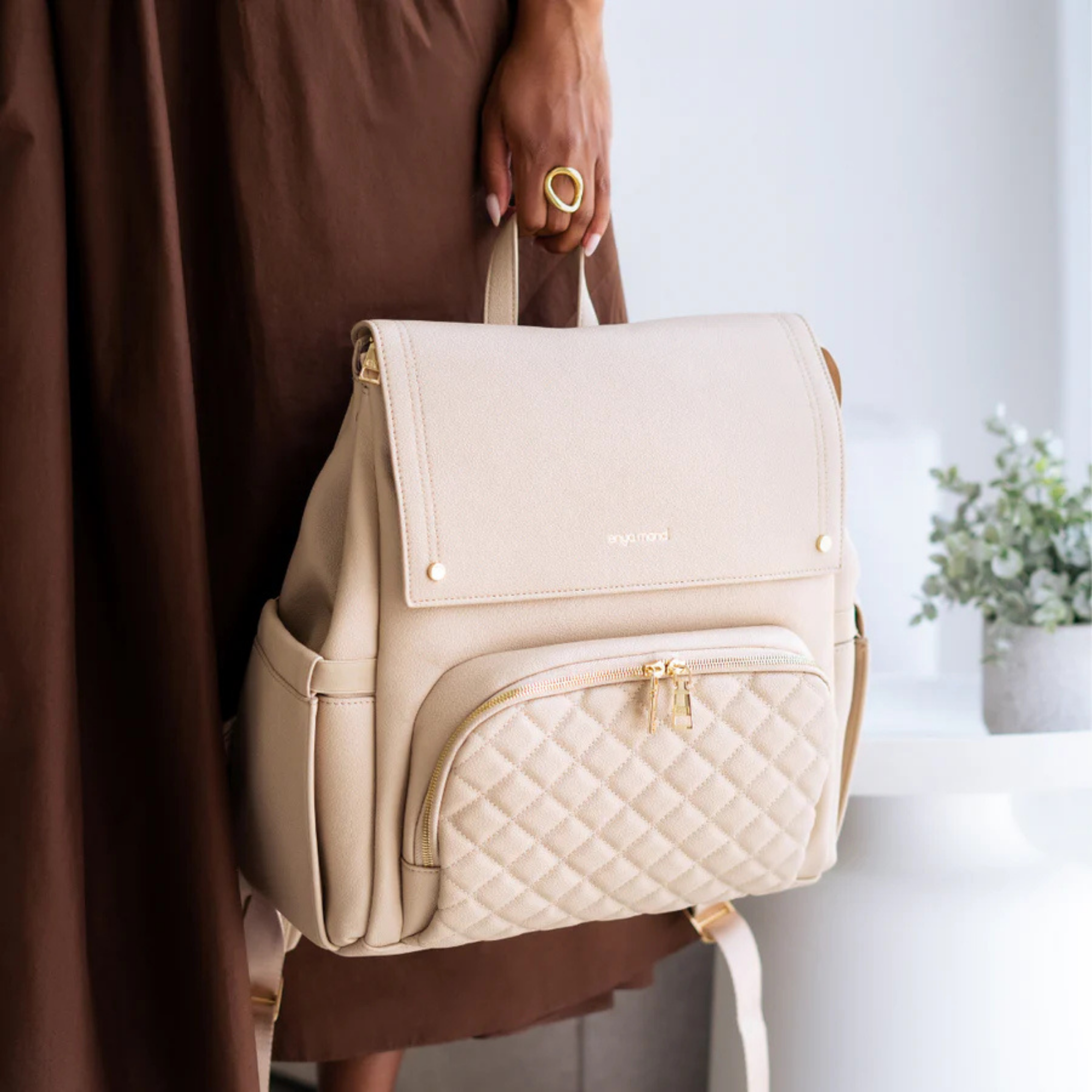 Confectionné en cuir végan haut de gamme à la finition grainée raffinée, le sac Luna respire l'élégance. Chaque détail témoigne de sa qualité, des fermetures éclair de qualité supérieure aux finitions dorées ornées du logo personnalisé. Et pour les petits accidents du quotidien ? Sa doublure imperméable vous protège efficacement.