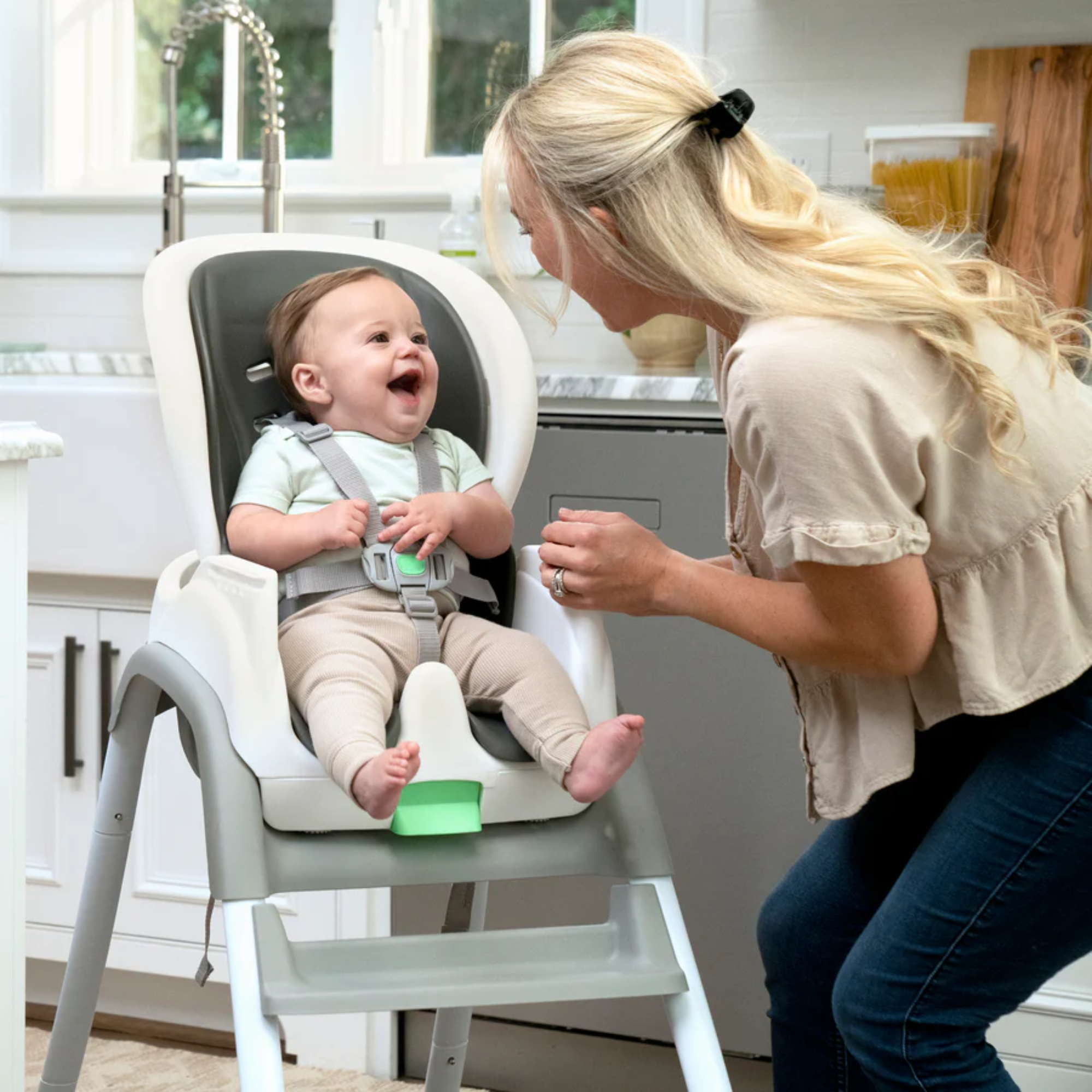 - 6 modes : de la chaise pour premiers repas à la chaise haute traditionnelle, en passant par le rehausseur de chaise, la chaise de salle à manger et le siège pour tout-petit ; lorsqu'elle est utilisée comme rehausseur et chaise pour tout-petit, elle peut accueillir deux enfants à la fois.