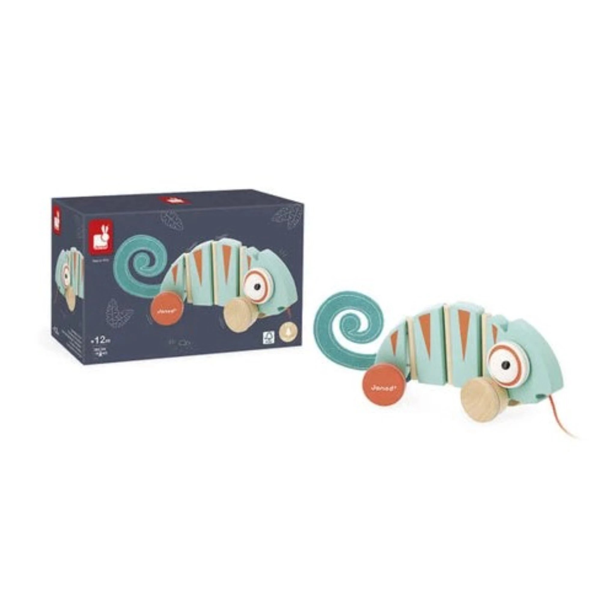 Prêt pour une balade sous les tropiques ? Bébé part à l'aventure avec ce joli caméléon en bois à tirer. Avec ses yeux qui roulent et son corps articulé, ce jouet à tirer ondule en roulant ! De quoi occuper les enfants dès 12 mois pendant des heures. Avec son apparence rigolote et sa queue en feutre toute douce, ce jouet d'éveil en bois ravira toute la famille ! Idéal pour encourager les enfants dès un an à se déplacer, ce mignon caméléon les accompagnera dans leurs premiers pas. Ce jouet à tirer en bois est fabriqué à partir de peinture à l'eau et de bois issu de forêts gérées durablement (certifiées FSC®).
