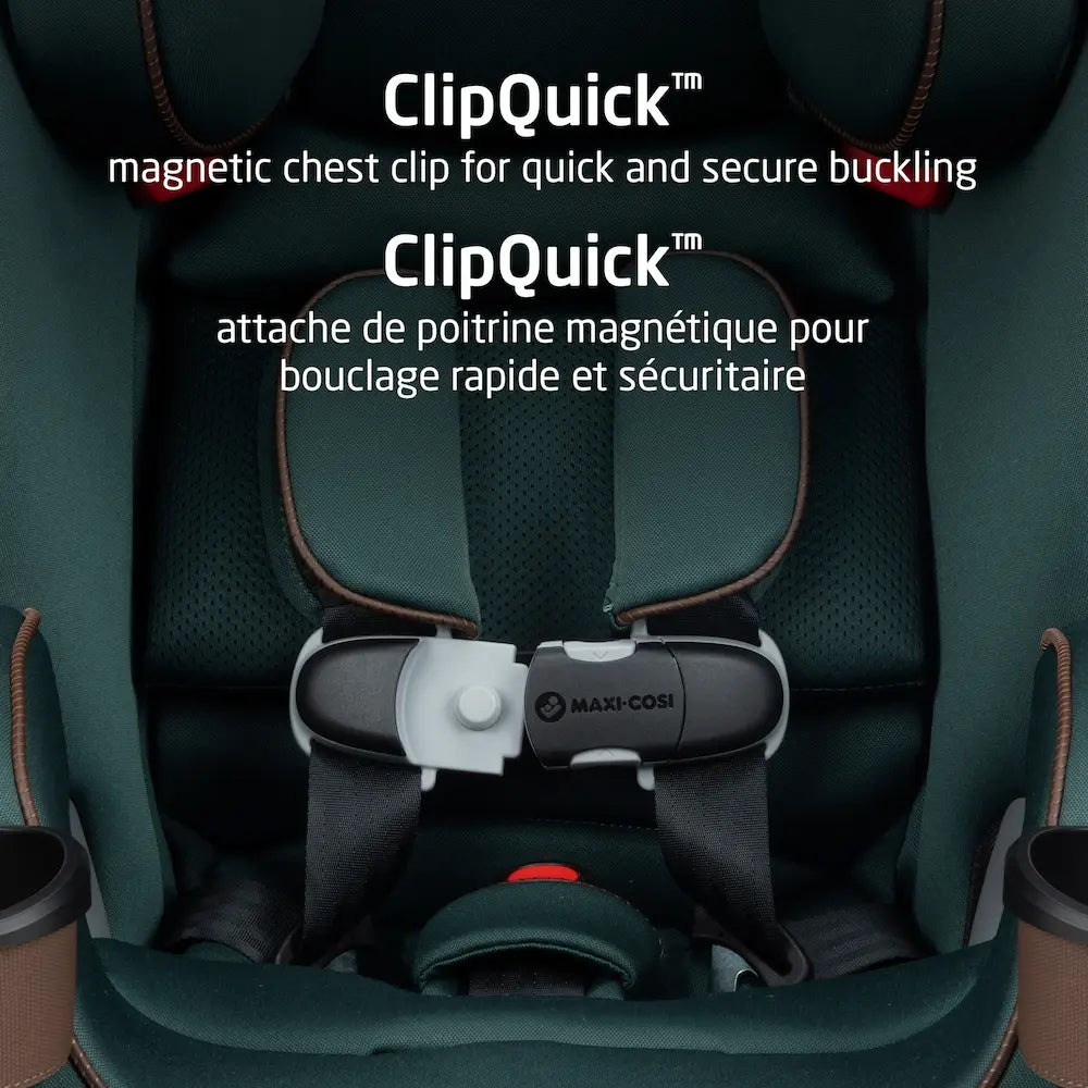 L'appui-tête réglable sur 10 positions et la base réglable sur 5 positions facilitent les transitions et assurent un ajustement sûr à votre enfant en pleine croissance. Le clip de poitrine auto-magnétique ClipQuick™ permet d'attacher votre enfant en toute sécurité et de partir rapidement.