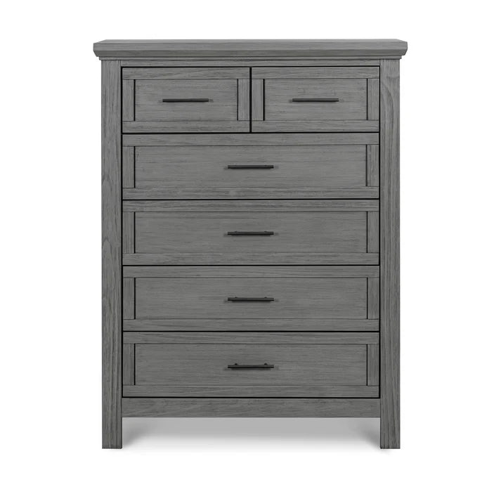 Un complément parfait au berceau convertible 4 en 1 Emory Farmhouse et à la commode à 6 tiroirs Emory Farmhouse, la commode Emory Farmhouse comprend 6 tiroirs profonds avec glissières à roulement à billes à fermeture automatique pour une utilisation facile.