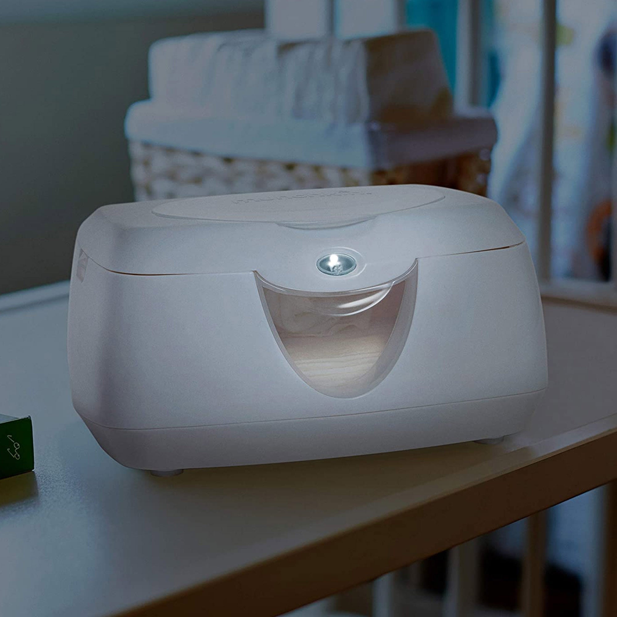 Assurez-vous que votre bébé ait toujours une lingette chaude et humide grâce à notre système de réchauffement par le haut. Le couvercle rabattable active une lumière apaisante de 10 minutes pour changer facilement votre bébé la nuit sans le réveiller. Il peut contenir jusqu'à 100 lingettes et dispose d'une fenêtre pour vérifier le niveau d'un coup d'œil. Fini les lingettes froides et les veilleuses qui réveillent bébé. Parce qu'un bébé qui dort, c'est une maman qui dort. Le réchauffement par le haut empêche le brunissement. Un bouton marche/arrêt contrôle la lumière. Garantie limitée d'un an. Cet article est blanc avec des touches de violet bleuté.