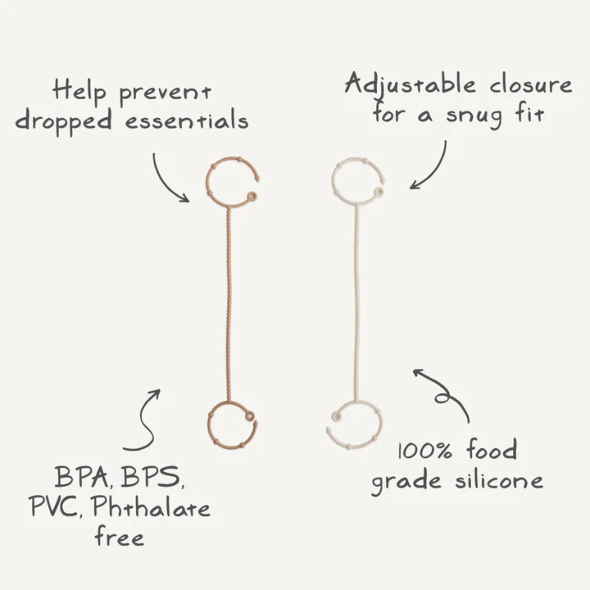 Les sangles réglables en silicone de Mushie maintiennent les essentiels de bébé en toute sécurité, permettant aux parents et à leurs enfants de profiter de sorties plus sereines. Évitez les chutes de jouets, de tétines et de gobelets grâce à ces sangles polyvalentes conçues pour s'attacher aux poussettes, chaises hautes, sièges auto, etc. Une fermeture réglable à chaque extrémité assure un ajustement parfait pour divers objets, tandis que le silicone durable et non toxique résiste à l'usure quotidienne.