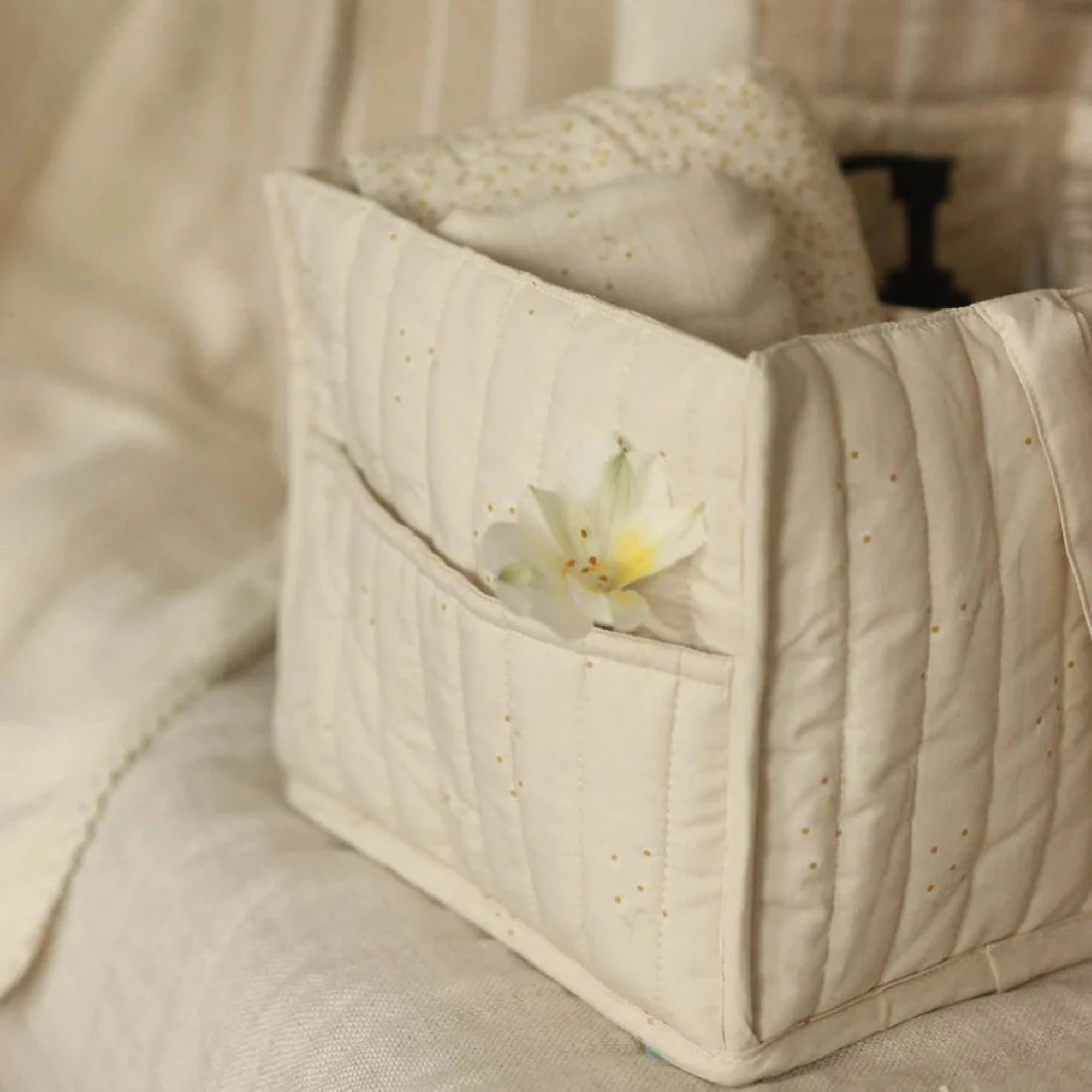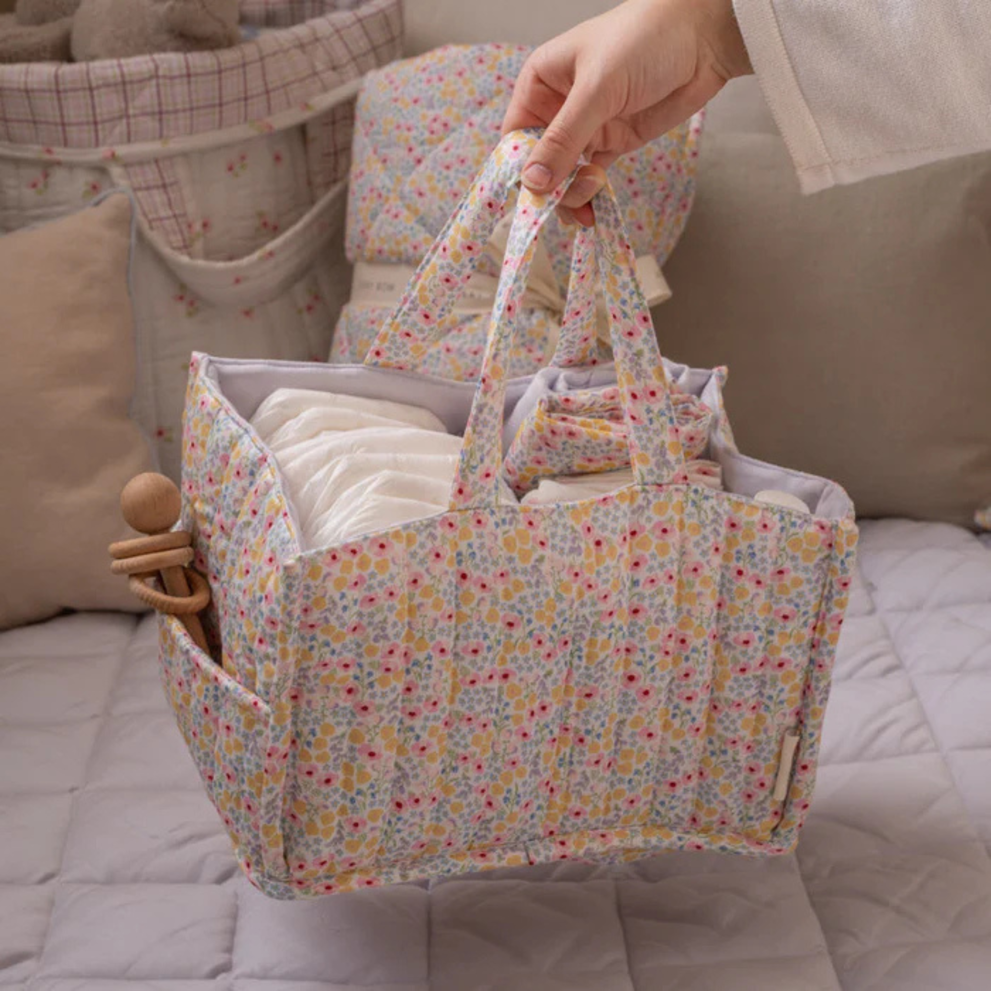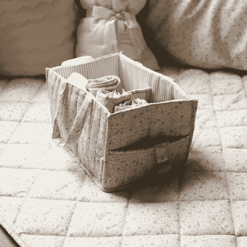Le complément idéal à votre table à langer. Notre panier à couches matelassé est doté de deux poches extérieures et de trois compartiments intérieurs, parfaitement dimensionnés pour ranger couches, crèmes et lingettes. Ses poignées facilitent son transport et vous permettent d'avoir toujours à portée de main le nécessaire pour le change de bébé.
