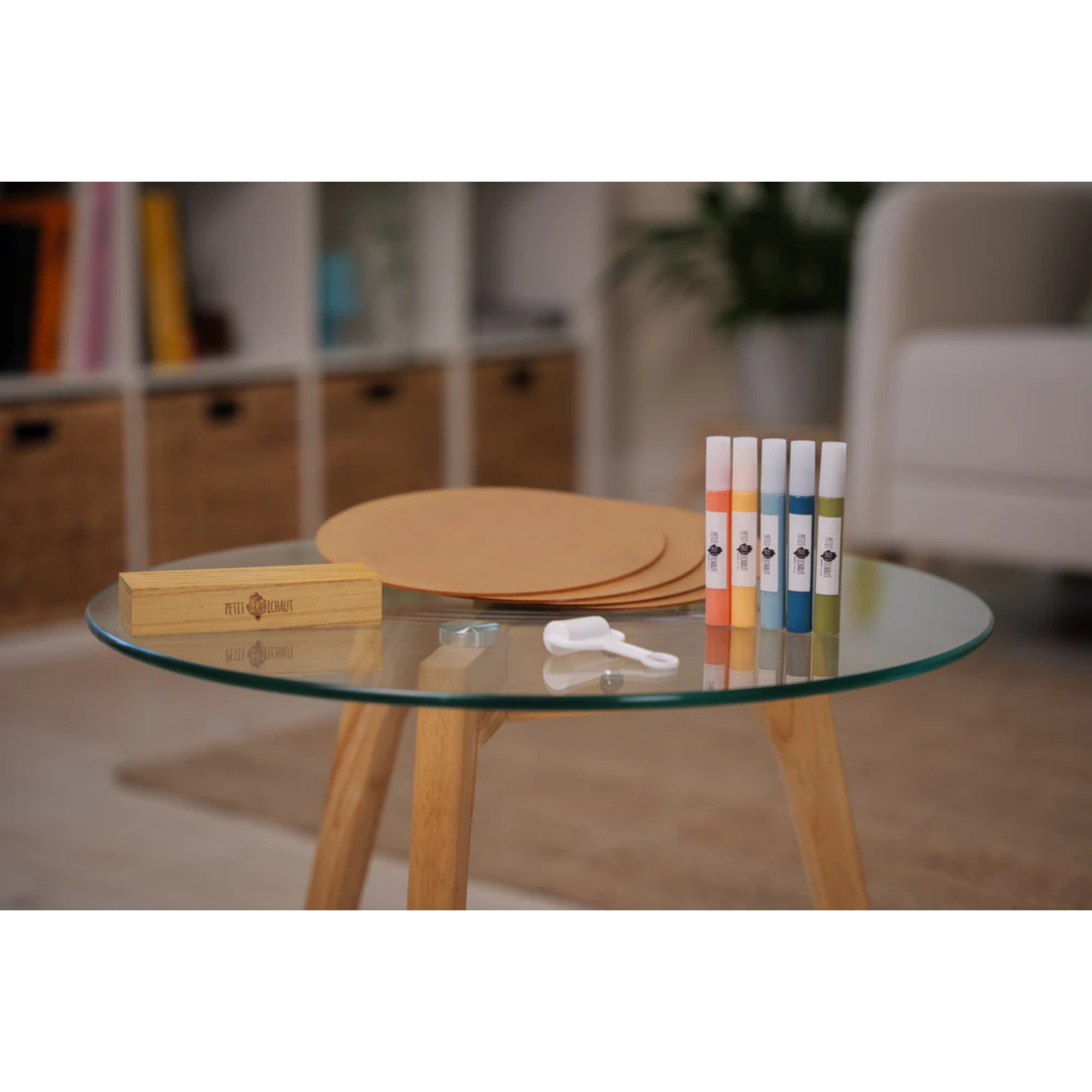 Family Colors permet à cinq membres d'une même famille de créer chacun leur propre motif sur un panneau de plexiglas individuel, puis de les assembler pour former une composition colorée et superposée. Chaque kit comprend cinq panneaux transparents, un joli socle en bois, cinq tubes de peinture, un rouleau et un mode d'emploi pour réaliser facilement les impressions. Family Colors offre une façon moderne et originale d'afficher l'unité et l'amour familial à travers une décoration intérieure unique.