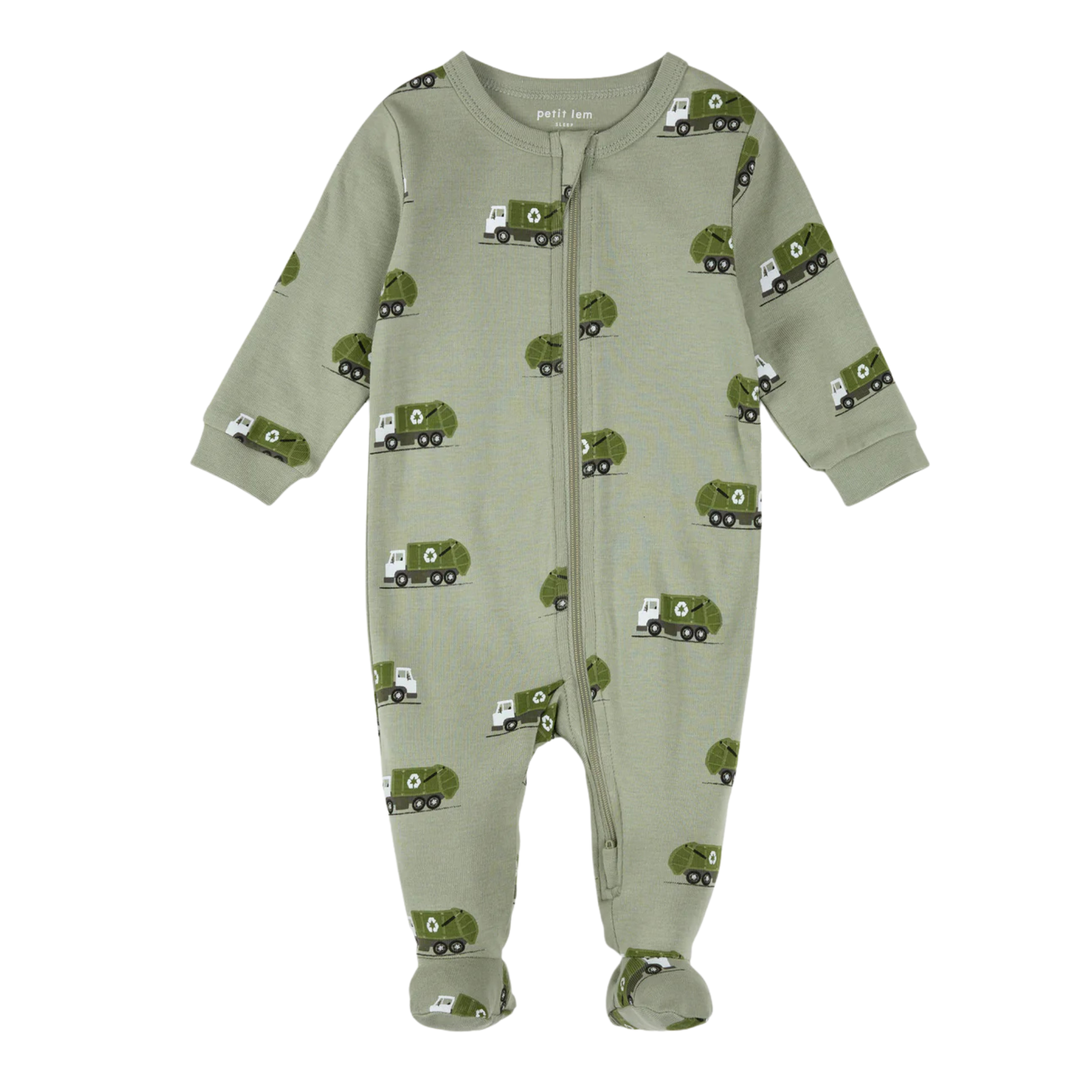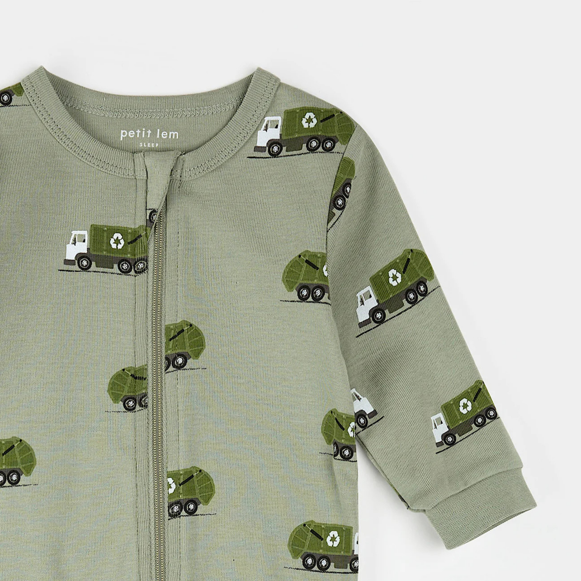 Perfect for little eco-heroes, this Recycling Trucks printed sleeper keeps them warm and comfortable for another shift in dreamland. Ribbed cuffs and a two-way zipper make it both cozy and practical, allowing him to explore his surroundings while mom and dad can quickly change diapers during the night.
