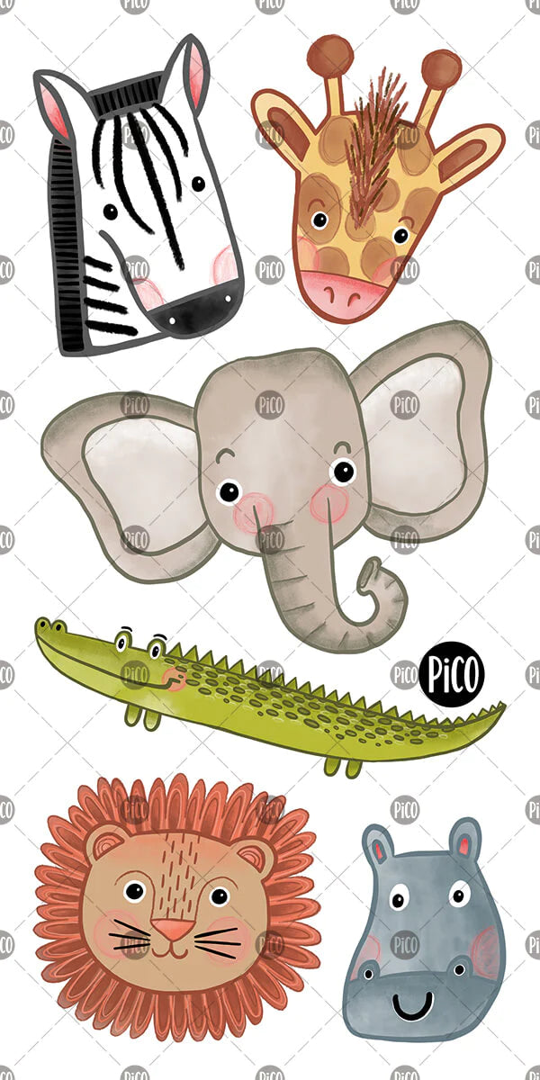 Le zèbre, la girafe, l'éléphant, le crocodile, le lion et l'hippopotame sont les vedettes de ce charmant safari. Ouvrez l'œil si vous vous aventurez dans la jungle, vous pourriez bien les apercevoir se prélasser au soleil.