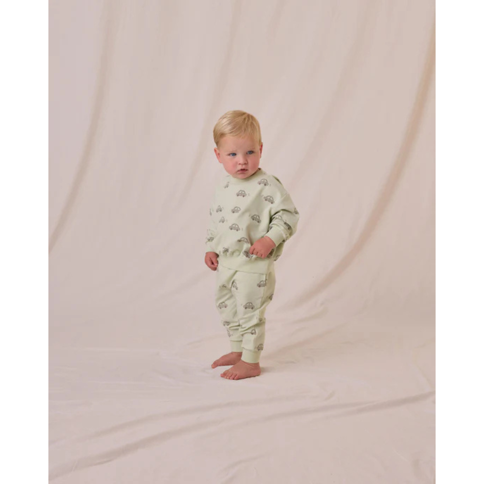 - Avec notre imprimé « voitures » sur notre teinte « menthe » - un look de petites roues pour votre tout-petit.