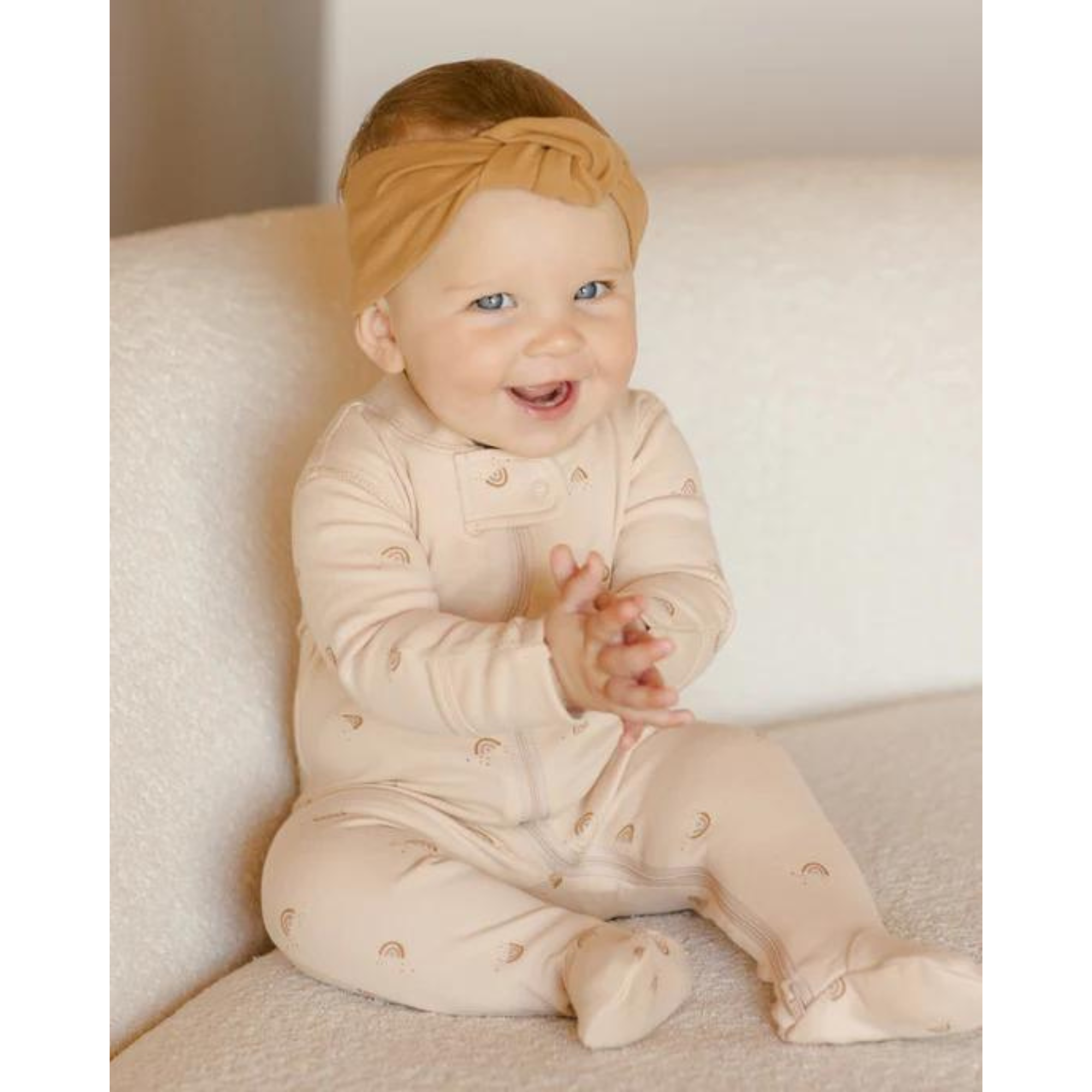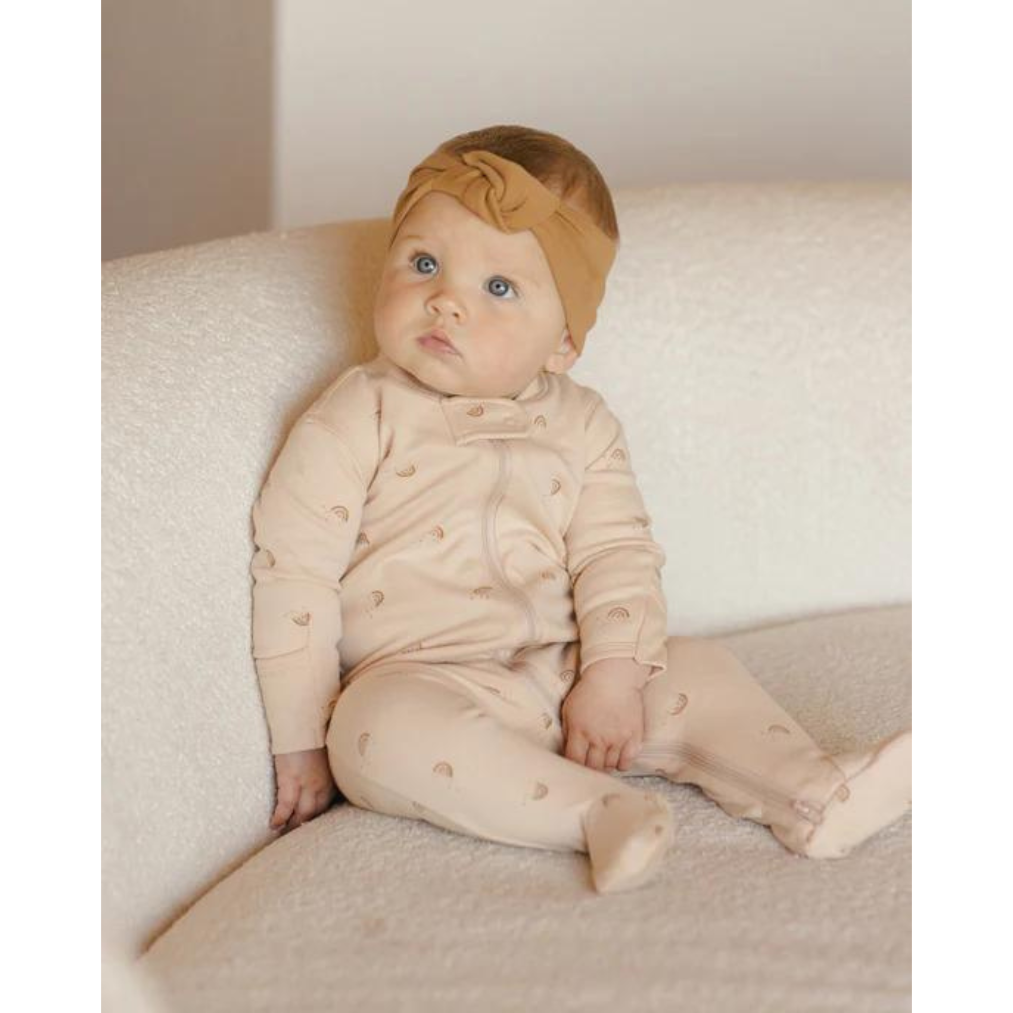 Offrez à votre bébé un confort douillet ! Découvrez dès maintenant la grenouillère zippée QUINCY MAE à manches longues et pieds – Arcs-en-ciel chez Kido Bebe pour un change facile et une sensation de douceur !