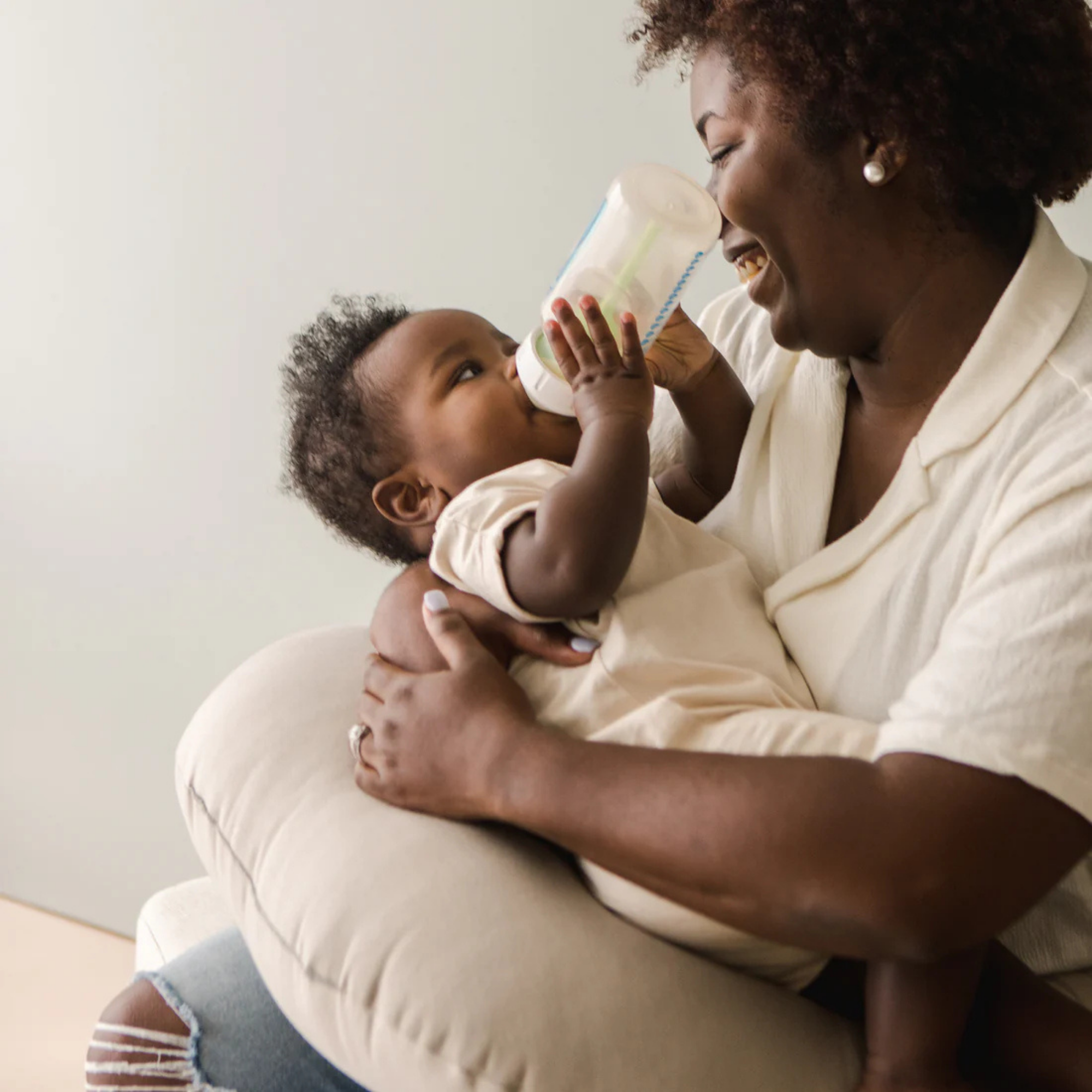 Le support d'alimentation Snuggle Me est conçu pour s'adapter à vos besoins alimentaires et à ceux de votre bébé. Ses extrémités étroites se glissent dans le dos ou sur le côté, et son centre épais vous permet de l'amener tout près de vous.