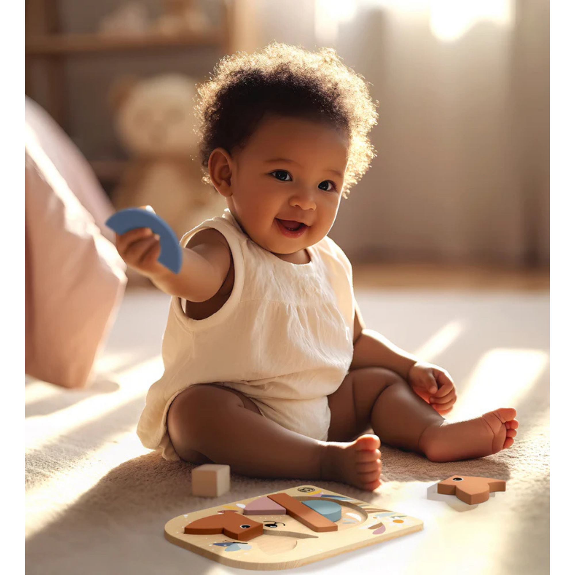 Stimulez l'éveil et la motricité fine des tout-petits avec l'adorable puzzle Renard ! Composé de 6 pièces en bois certifié FSC provenant de notre fournisseur certifié, ce puzzle coloré est conçu pour les enfants curieux dès 12 mois. Ses formes simples et son design vibrant aident les plus petits à développer leur coordination œil-main, leur reconnaissance des formes et leur capacité à résoudre des problèmes, tout en s'amusant.