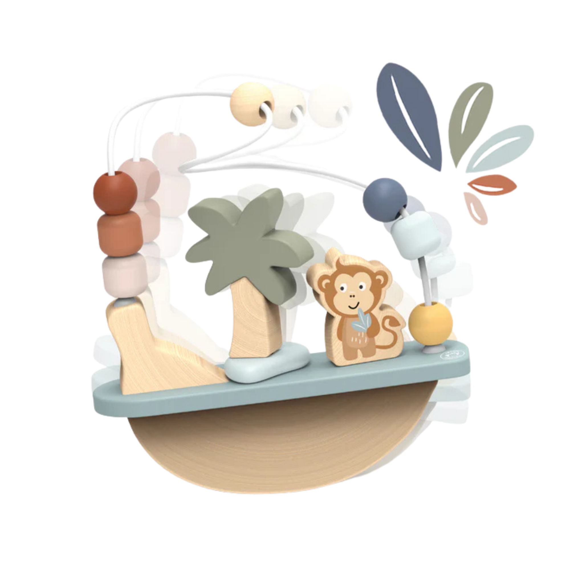 Ce bois aux teintes douces, certifié FSC, provenant de notre fournisseur certifié, et son labyrinthe de perles de singe, se balancent doucement d'un côté à l'autre et se tordent et tournent sans cesse.