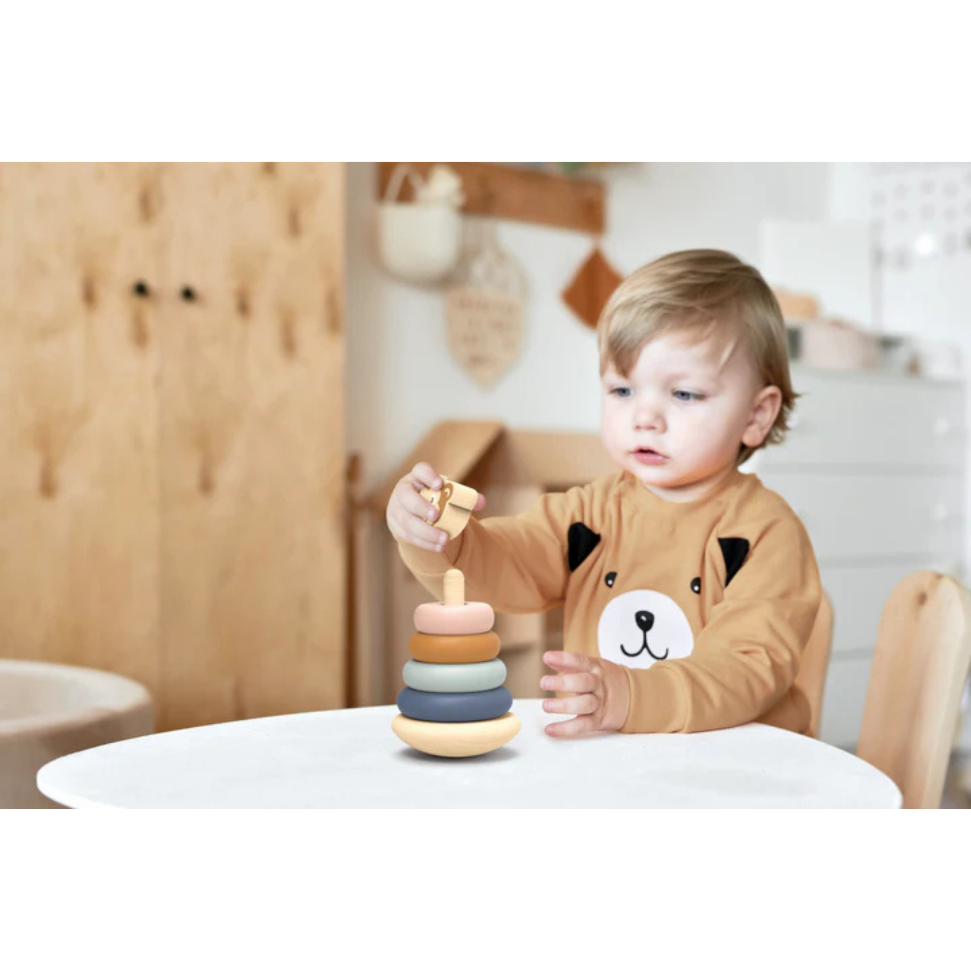 Offrez à votre enfant des heures de joie et d'apprentissage avec le Roly Poly Stacker. Fabriqué en bois de haute qualité certifié FSC provenant de notre fournisseur certifié, ce jouet allie parfaitement divertissement et éducation. Regardez votre enfant explorer les couleurs et les formes, et développer sa motricité fine tout en s'amusant avec ce Roly Poly Stacker captivant.