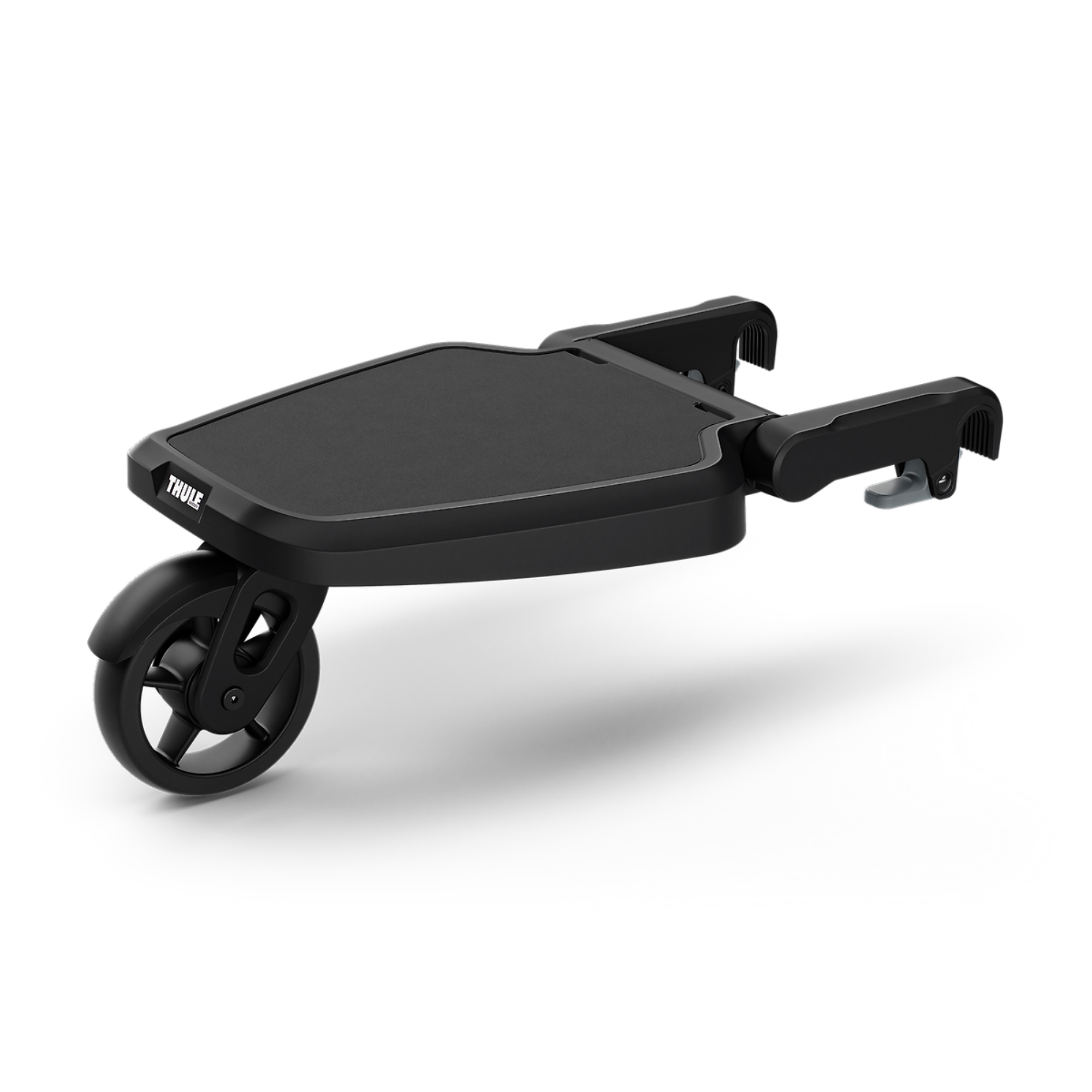 Vous pouvez désormais terminer vos promenades en poussette en toute sécurité grâce à la planche Thule, même lorsque votre aîné est trop fatigué pour continuer à marcher ! Fixez-la simplement à l'arrière de votre poussette Thule et le tour est joué !