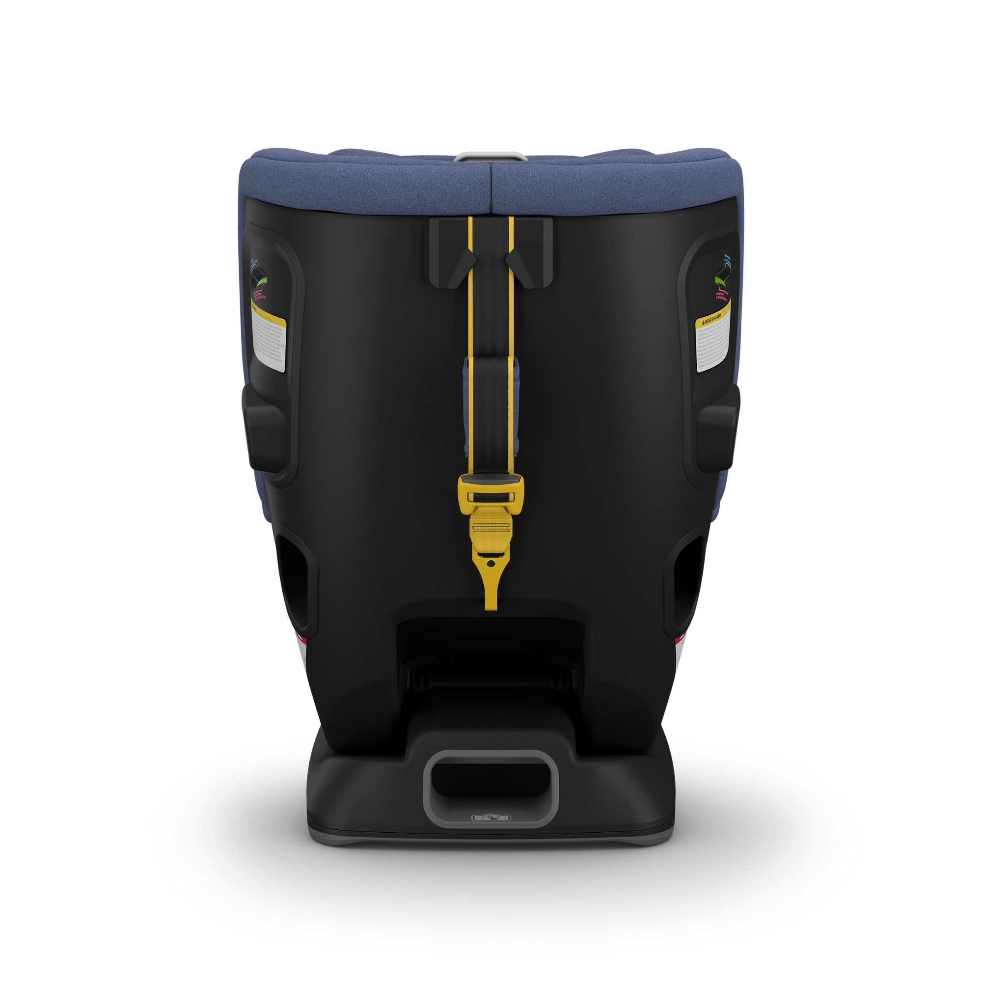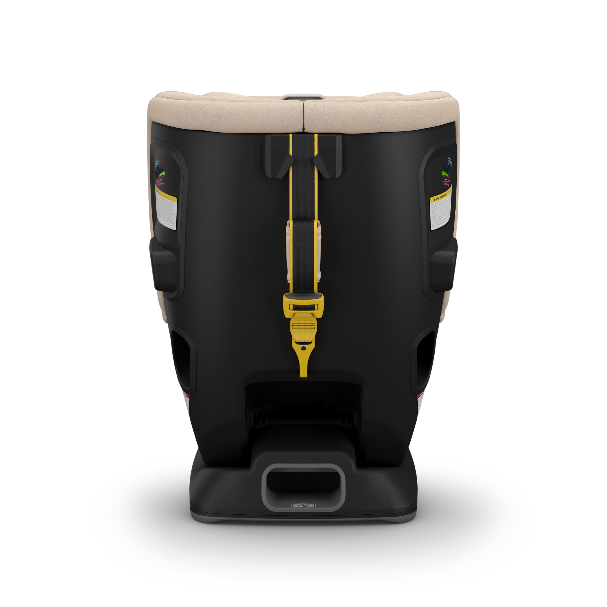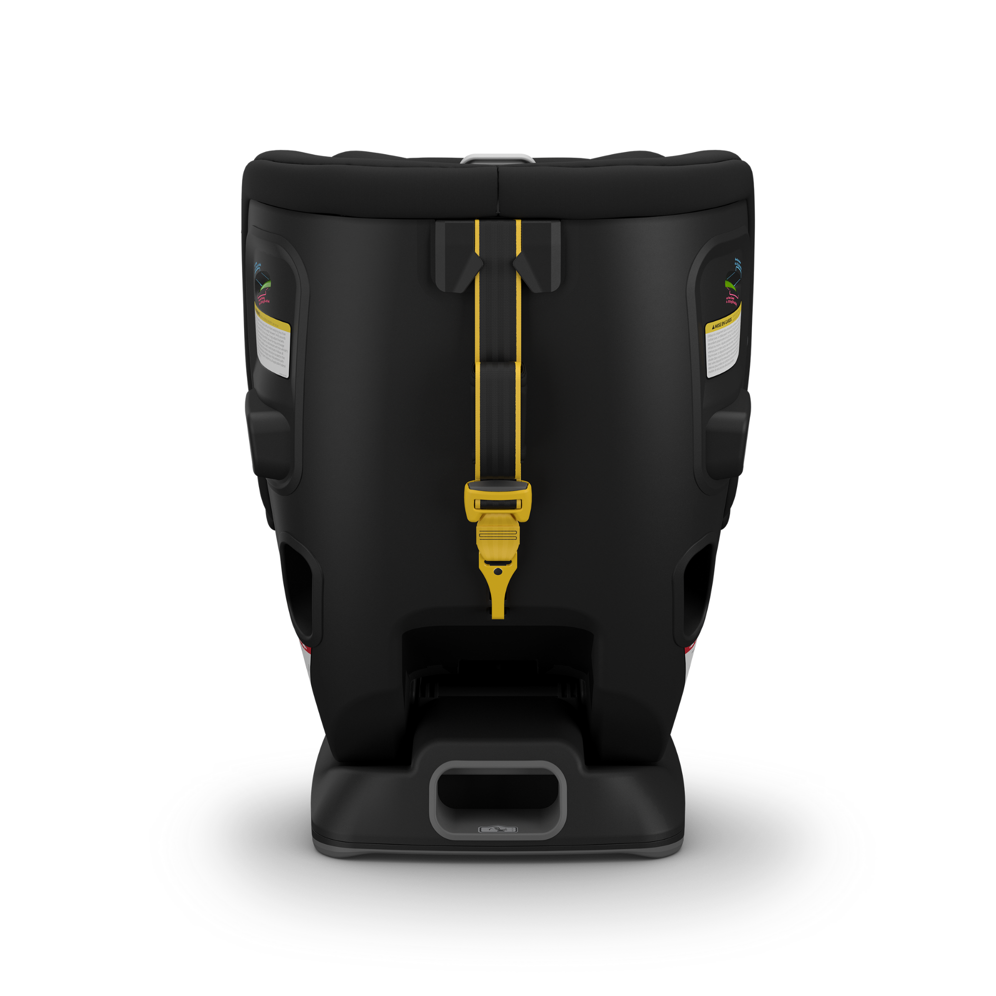 - La sangle multidirectionnelle pour les voyages orientés vers l'arrière et vers l'avant réduit la rotation du siège et la tension sur la tête et le cou de l'enfant en cas d'accident