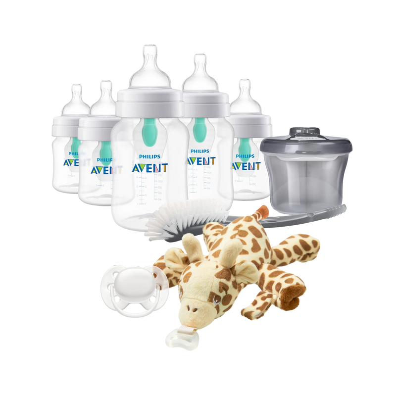 - Complete Newborn Gift Set: The AVENT Anti-colic Baby Bottle with AirFree Vent Newborn Gift Set includes multiple bottles in different sizes (4 oz/125ml and 9 oz/260ml), various flow nipples to accommodate your baby's growing needs, a bottle brush for easy cleaning, and a pacifier. This comprehensive set ensures you have everything required for a successful feeding routine.