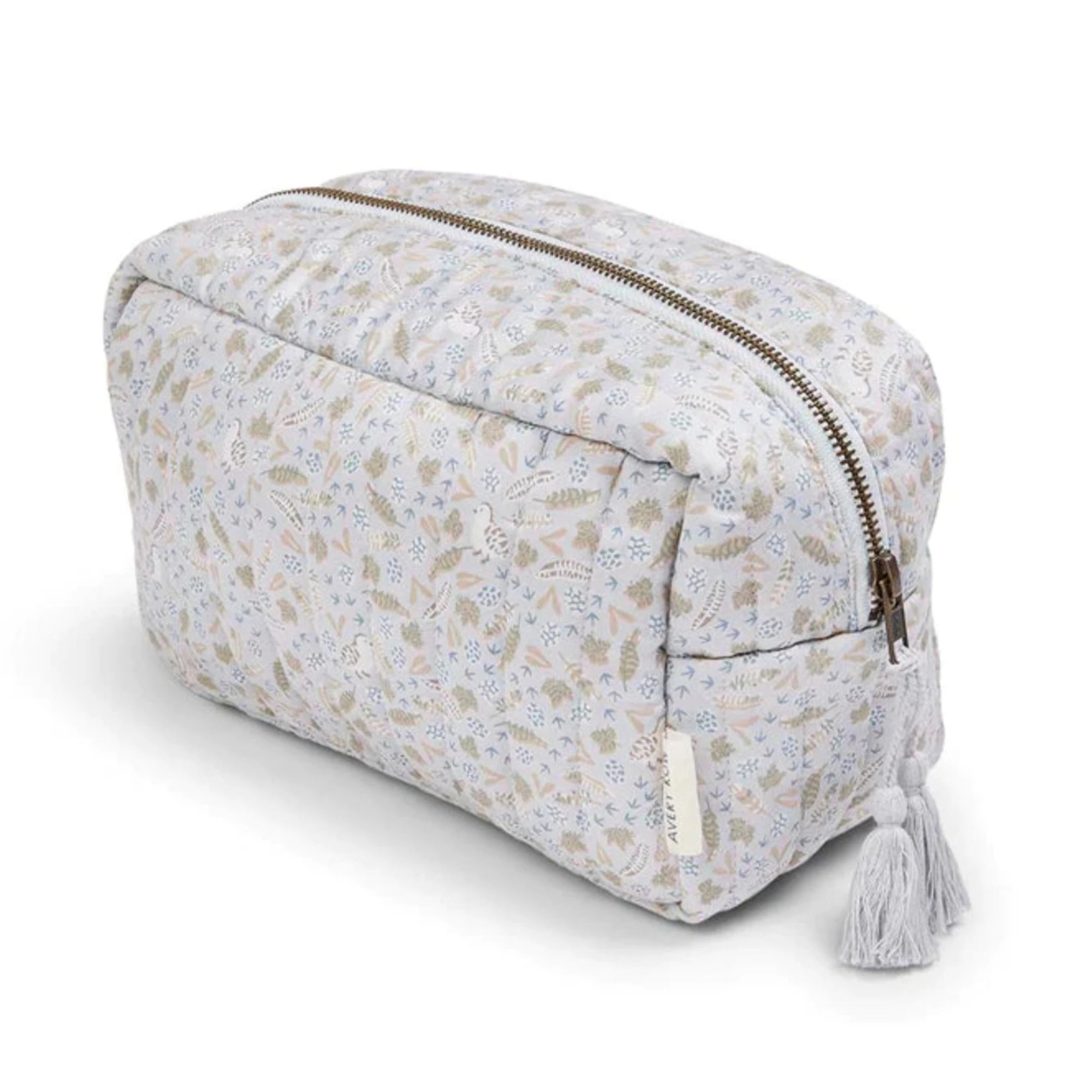 Our organic cotton quilted wash bag comes in our unique prints with a stylish tassel. A beautifully designed, practical pouch for parent or baby to store your toiletries, make up, and more or nappies and creams. It also has a handy elasticised pocket inside. The product that is for parent and baby and has an infinite number of uses.