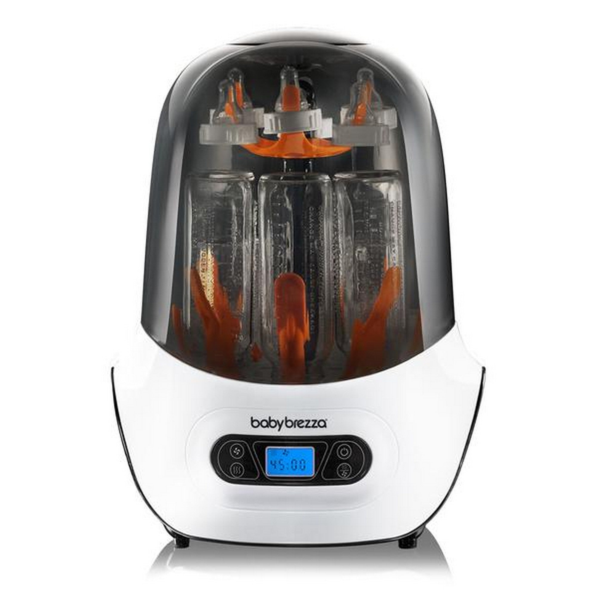 - The Baby Brezza Steri-Dry steam sterilizer automatically sterilizes and dries bottles, pump parts, and other accessories in 1 easy step – saving you time!