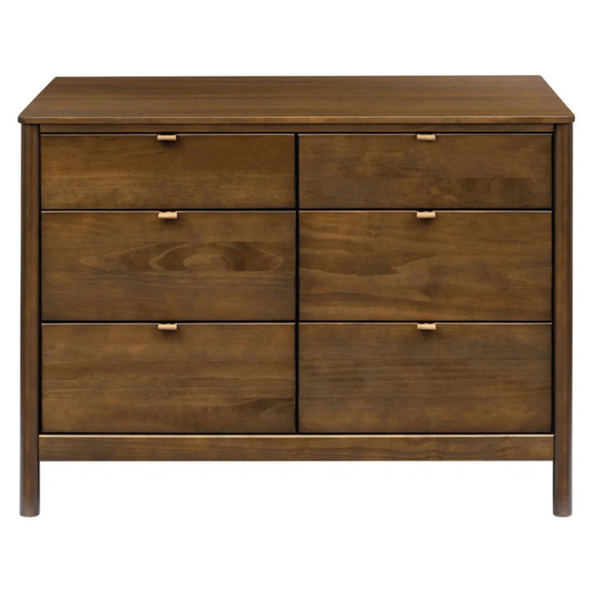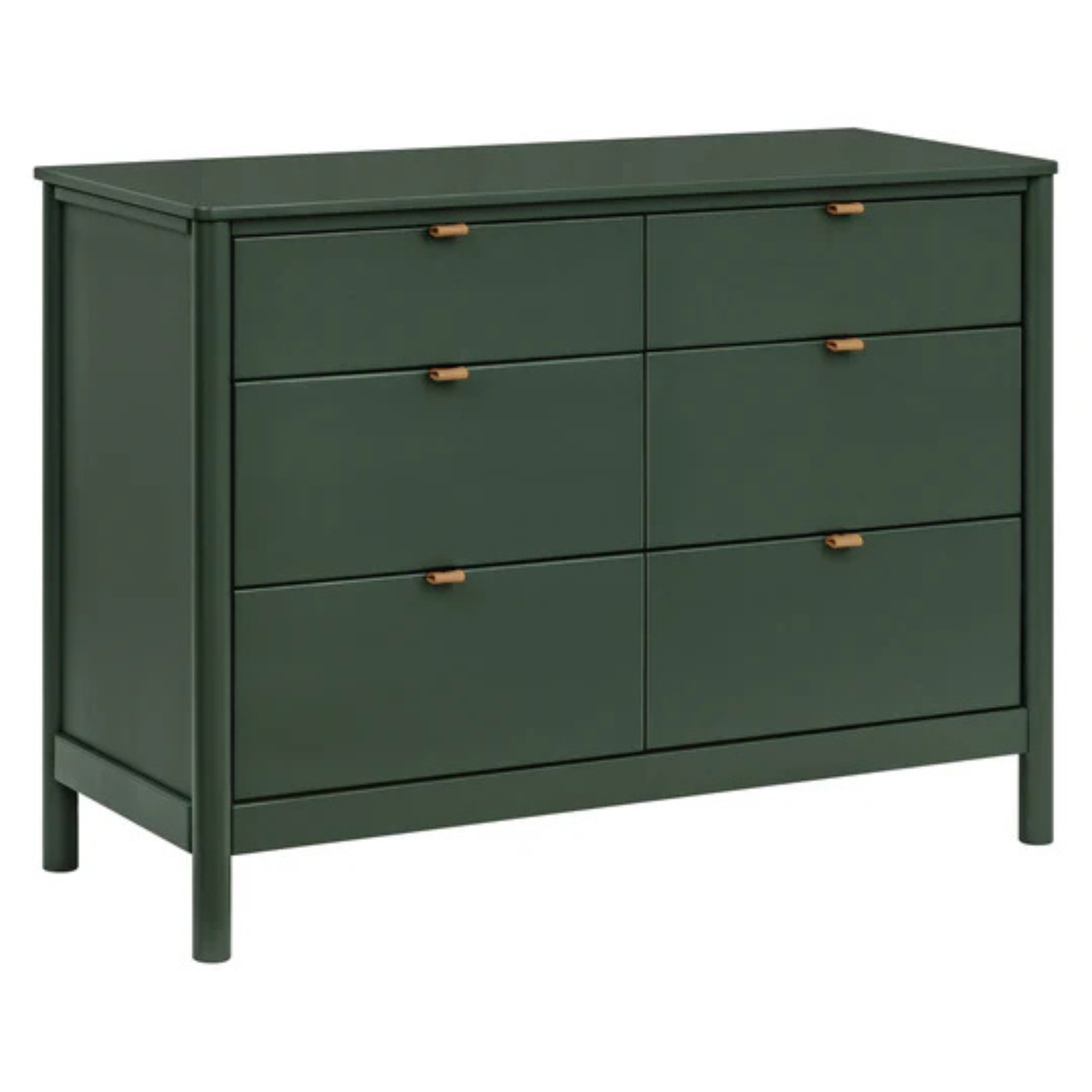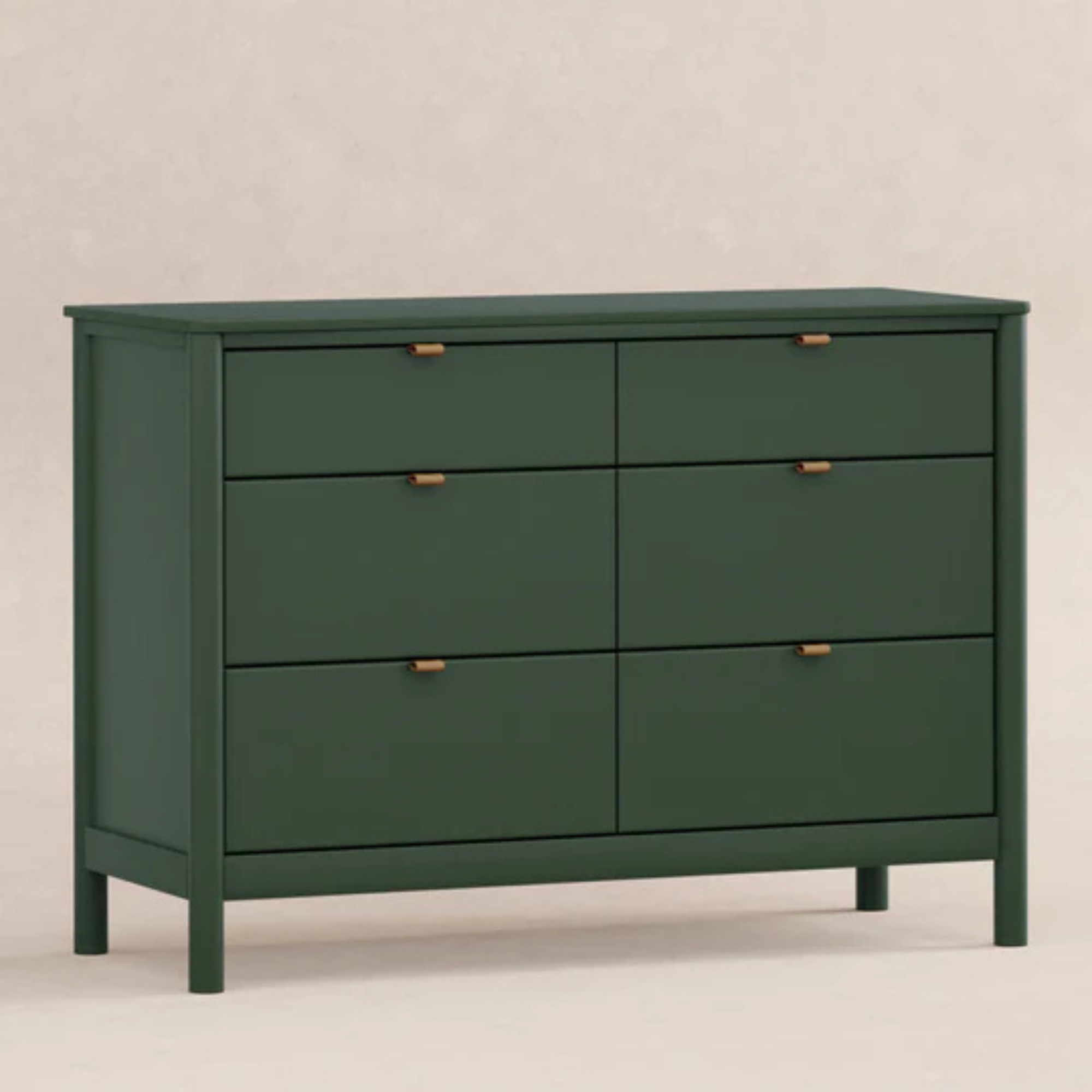 The simple yet sophisticated Bondi 6-Drawer Assembled Dresser complements both  (sold saparately ) the Babyletto Bondi Cane 3-in-1 Crib and the Bondi Boucle 4-in-1 Crib with its warm wood finish and tonal vegan leather drawer pulls, rounded posts and minimalist silhouette. It's designed for the nursery with spacious smooth-glide drawers, included anti-tip kit for safety, and best-of-all it arrives fully assembled, ready out of the box.