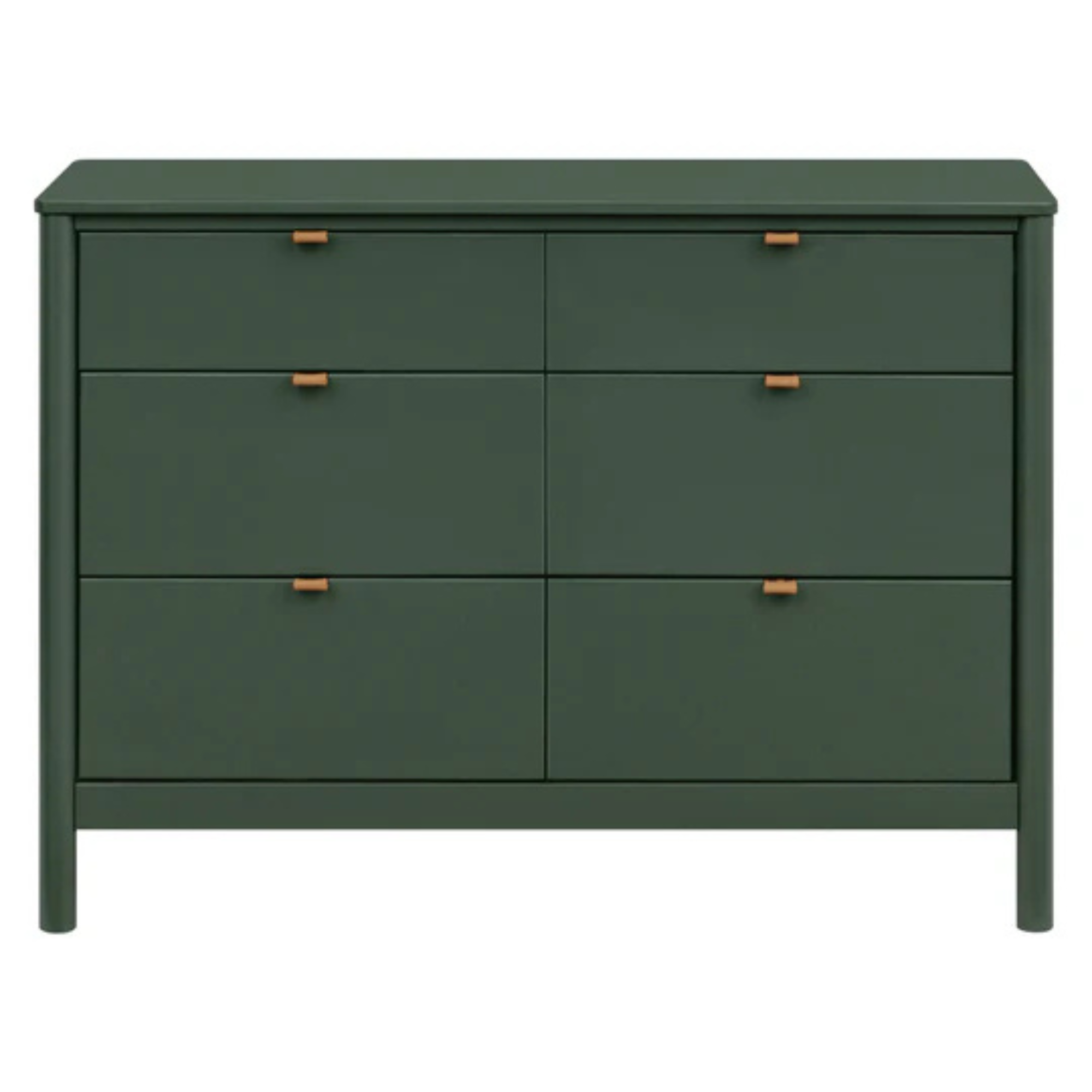 • BOHO-INSPIRED AESTHETIC: The Bondi 6-Drawer Dresser celebrates boho-inspired design with its warm wood tone, rounded posts and tonal vegan leather drawer pulls. Plus, our hidden hardware construction eliminates visible screws on the furniture exterior for a polished, clean look.