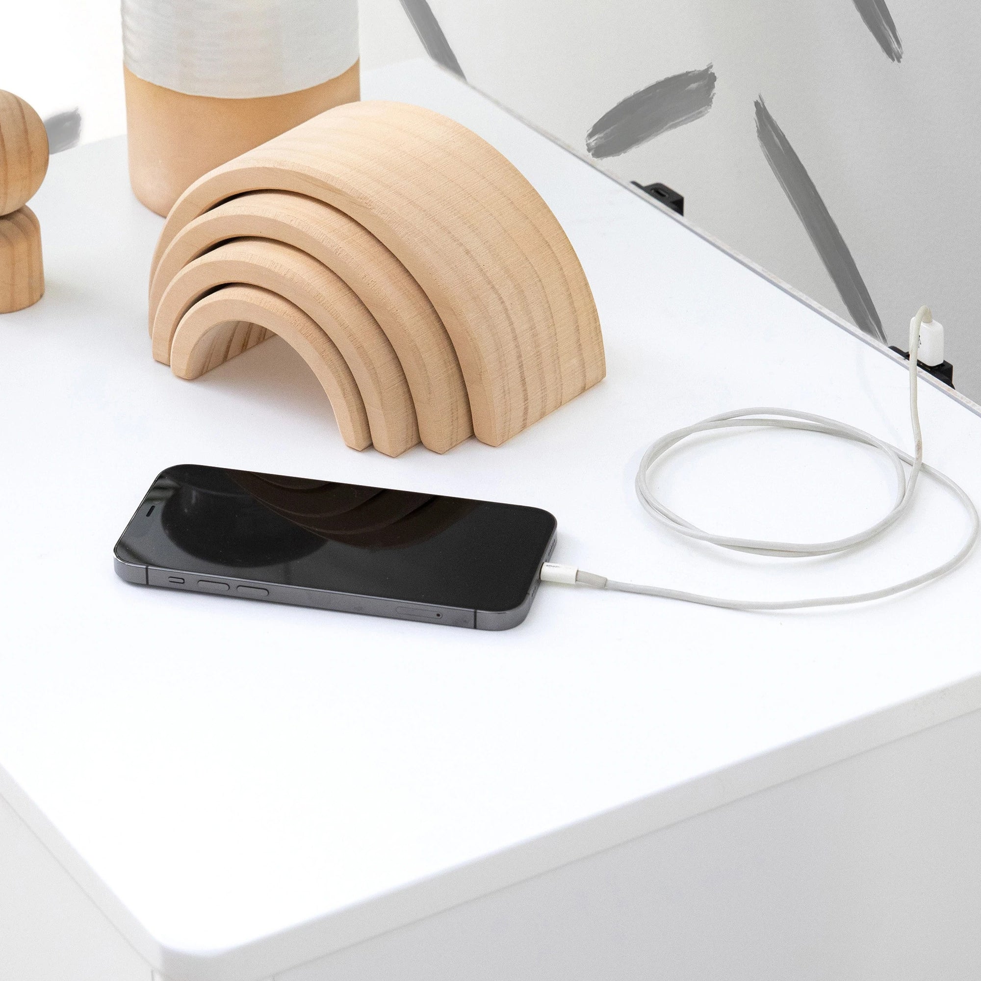 - USB Ports: Includes USB-A and USB-C ports that attach to the back of the nightstand to keep charging devices easily within reach.