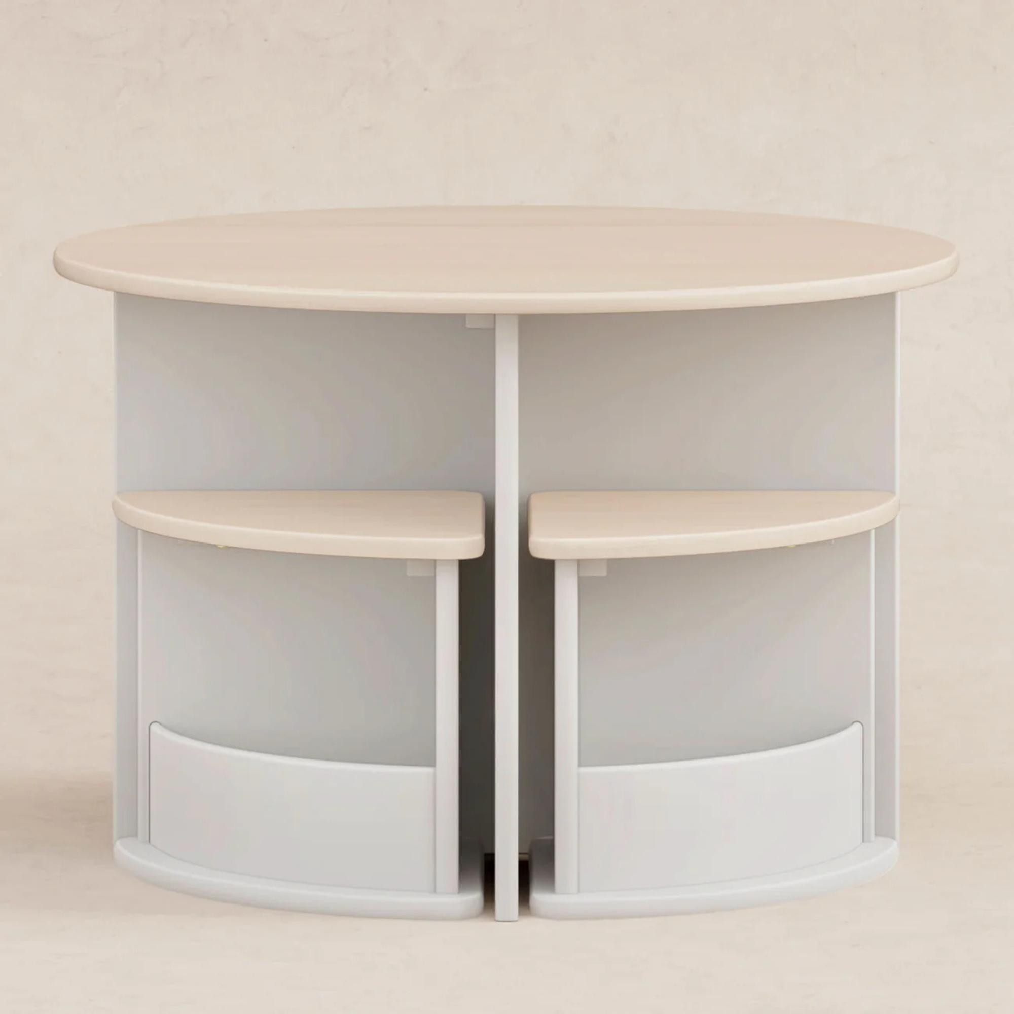 Set is a modern, space-saving playroom essential that’s big on function and style. With four perfectly proportioned chairs that tuck seamlessly under the table, Nessa keeps your play space looking tidy without compromising on fun. Each chair features built-in cubbies for stashing books, art supplies, or tiny treasure so your kiddo’s essentials are always within reach (and off your floor). Designed with clean lines, kid-friendly finishes, and a minimalist silhouette, the Nessa is as practical as it is playful.