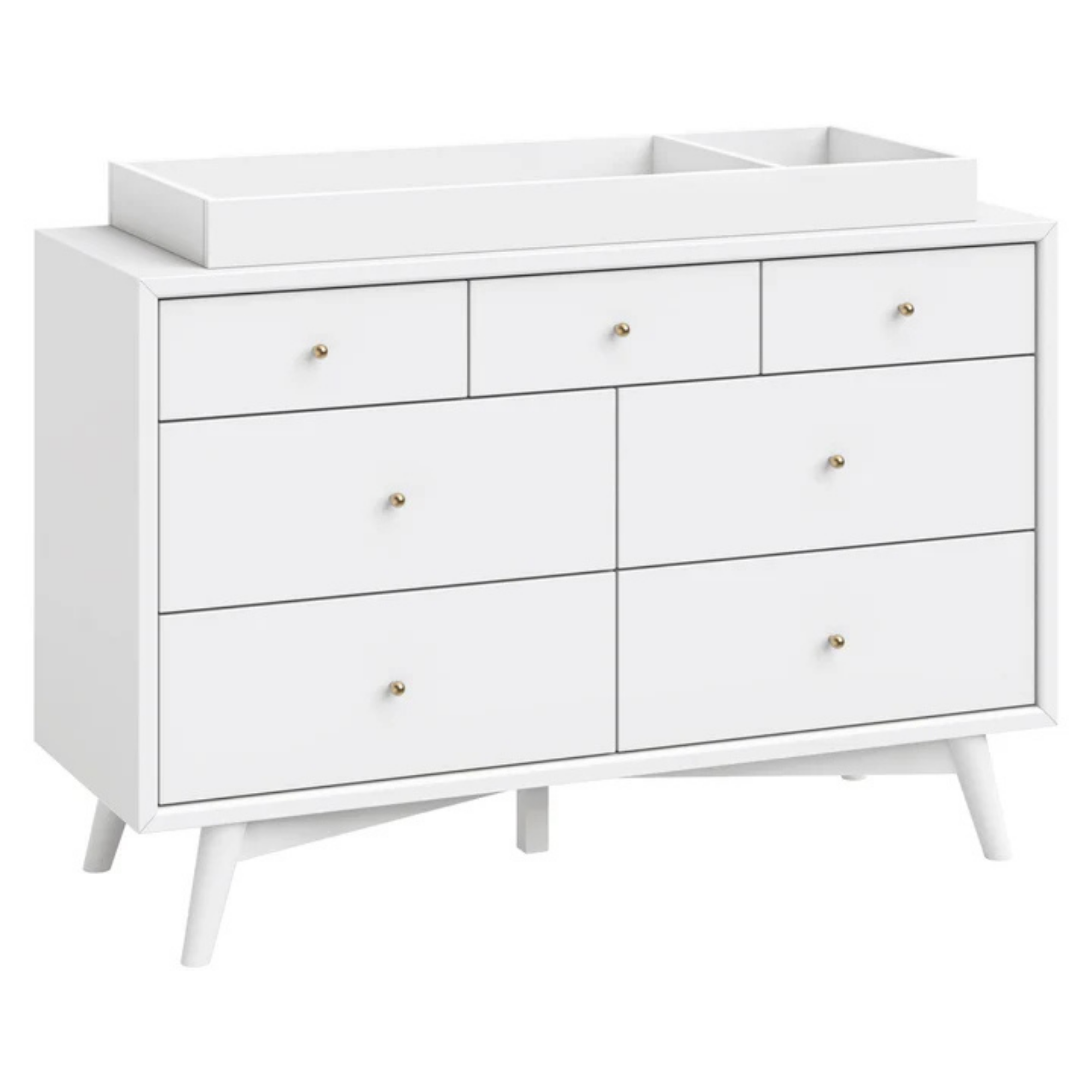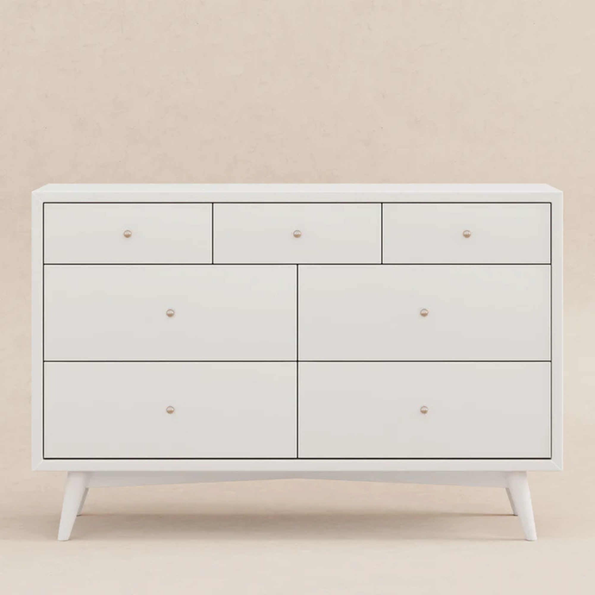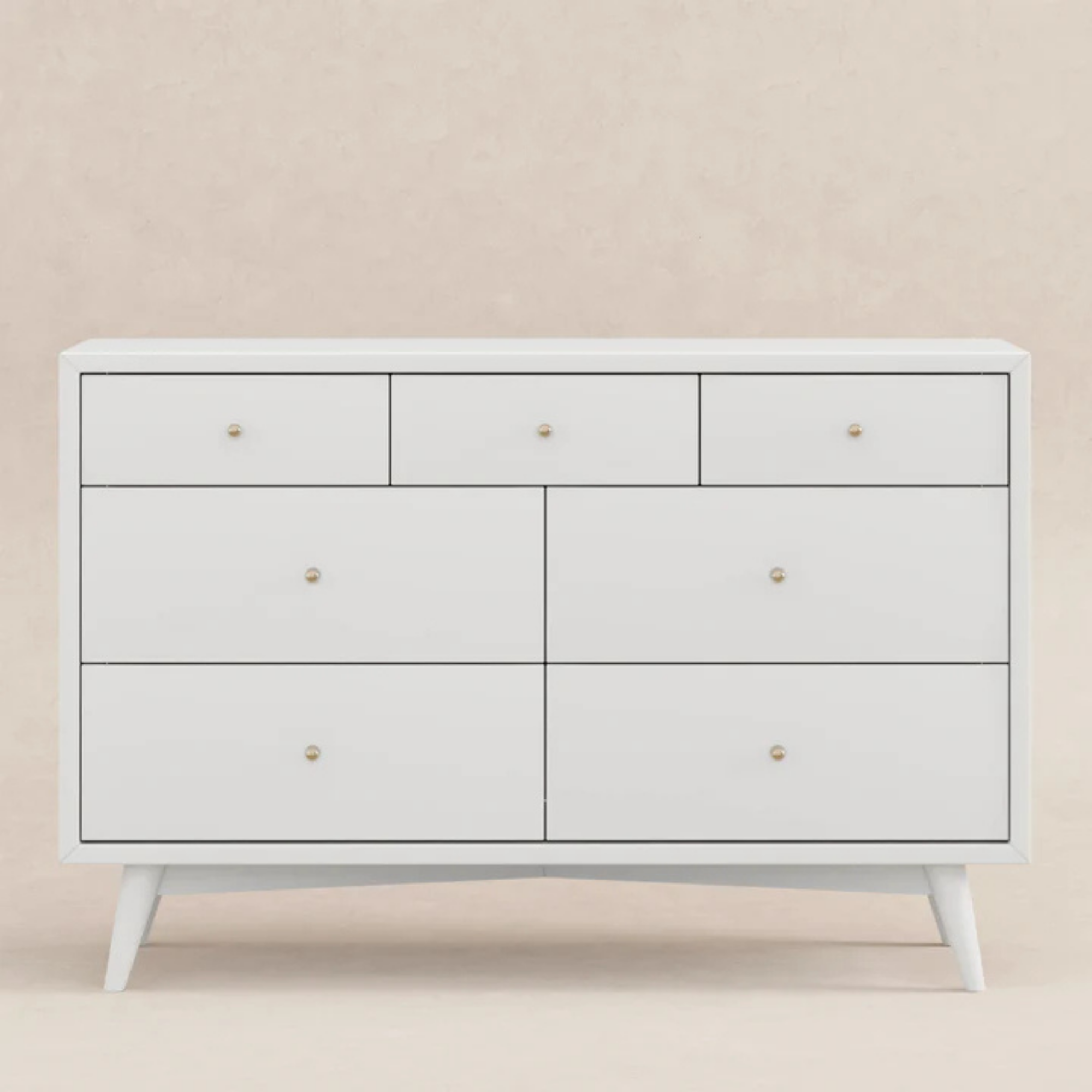 Transform your space with the sophisticated BABYLETTO Palma 7-Drawer Double Dresser. Its mid-century design, ample storage, and sleek hardware make it the perfect addition to any modern home. Purchase your BABYLETTO Palma Dresser today at Kido Bébé!