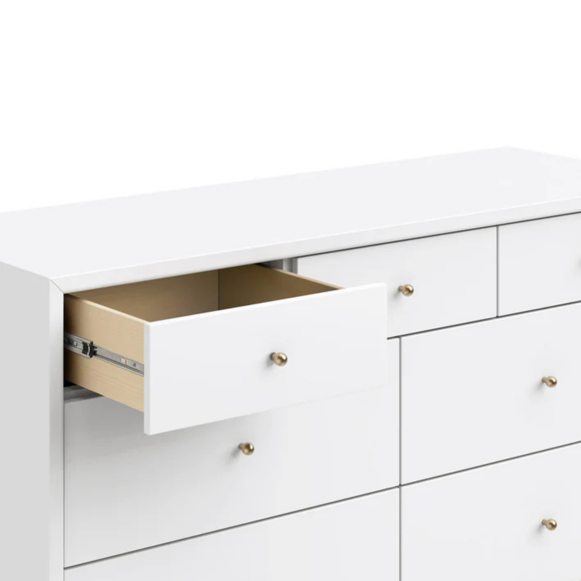 - SMOOTH GLIDE DRAWERS: Pre-installed ball-bearing glides, so you can fold away clothes even during nap time. For added safety, stop mechanisms feature on the drawers to prevent them from falling out.