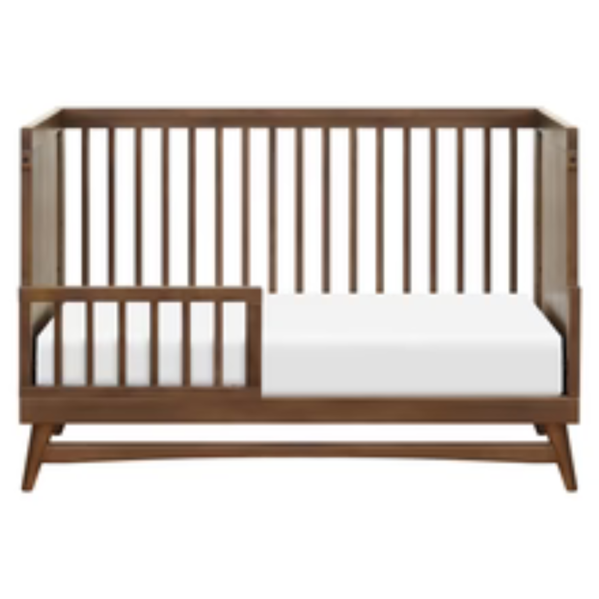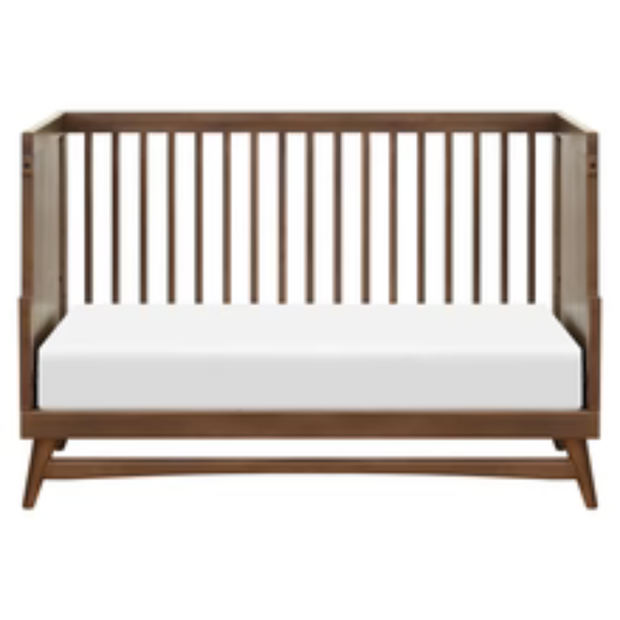 The Peggy 3-in-1 Convertible Crib encapsulates timeless mid-century modern design with its modern, clean silhouette and classic rounded spindles, while the flared tapered legs add a playful touch. The Peggy grows with your babe with an included toddler bed conversion kit allowing you to seamlessly convert from crib to toddler bed to daybed. Made with sustainable materials and GREENGUARD Gold certified for indoor air quality.
