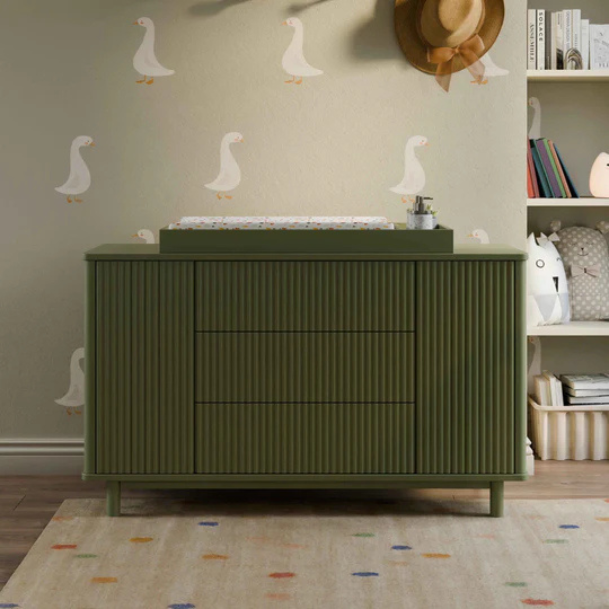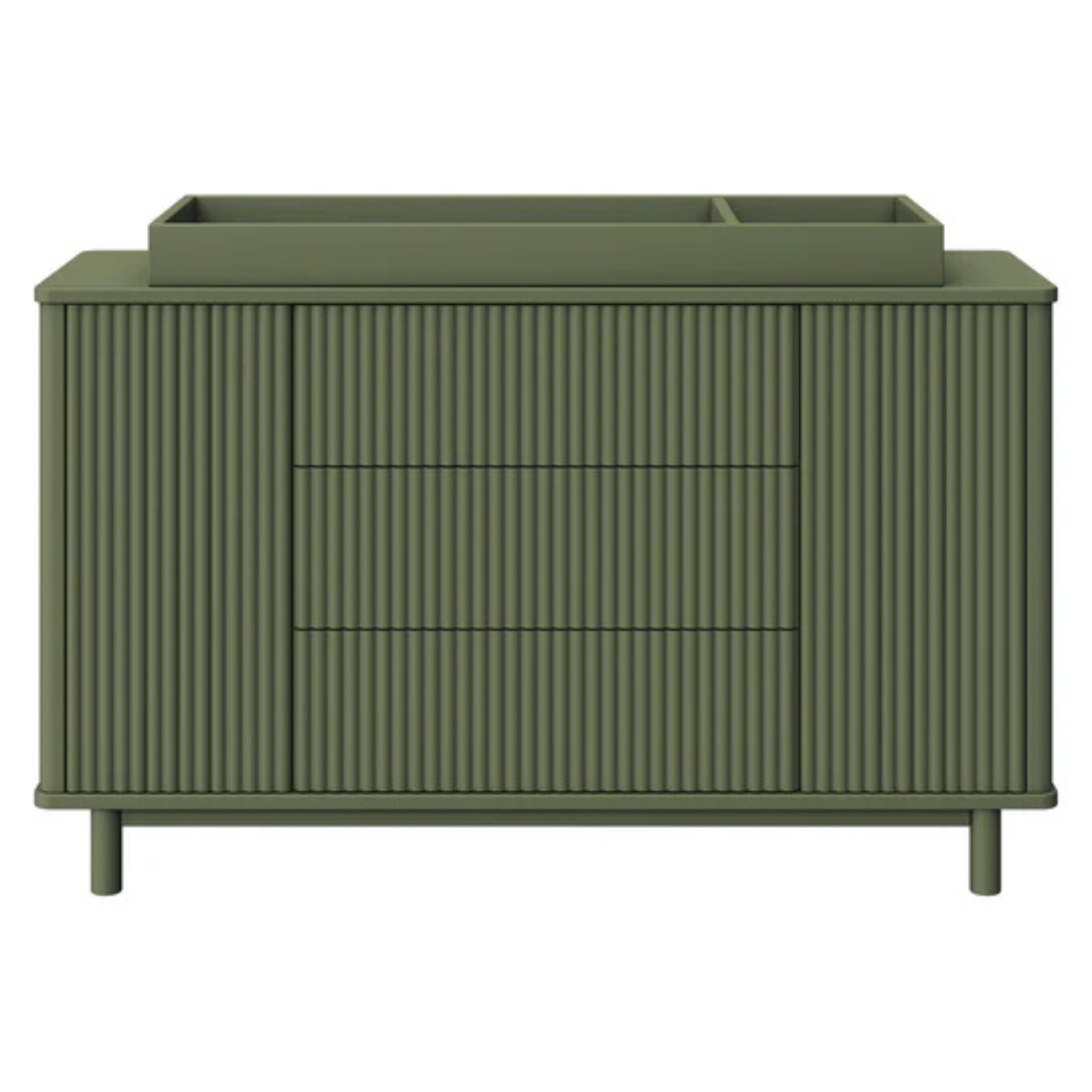 - SOPHISTICATED YET VERSATILE DESIGN: With smooth, rounded corners and elevated fluted tambour paneling, the Pogo dresser was designed to be a statement piece for the modern nursery and beyond. Seamlessly transition from changing table to dresser by incorporating optional removable changing tray for those early years (changing tray #M0619 sold separately).