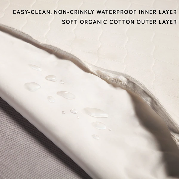 - Materials: Quilted Face: Organic Cotton; Filling: Polyester; Quilted Back: Organic Cotton; Backing: Food-Grade Polyethylene