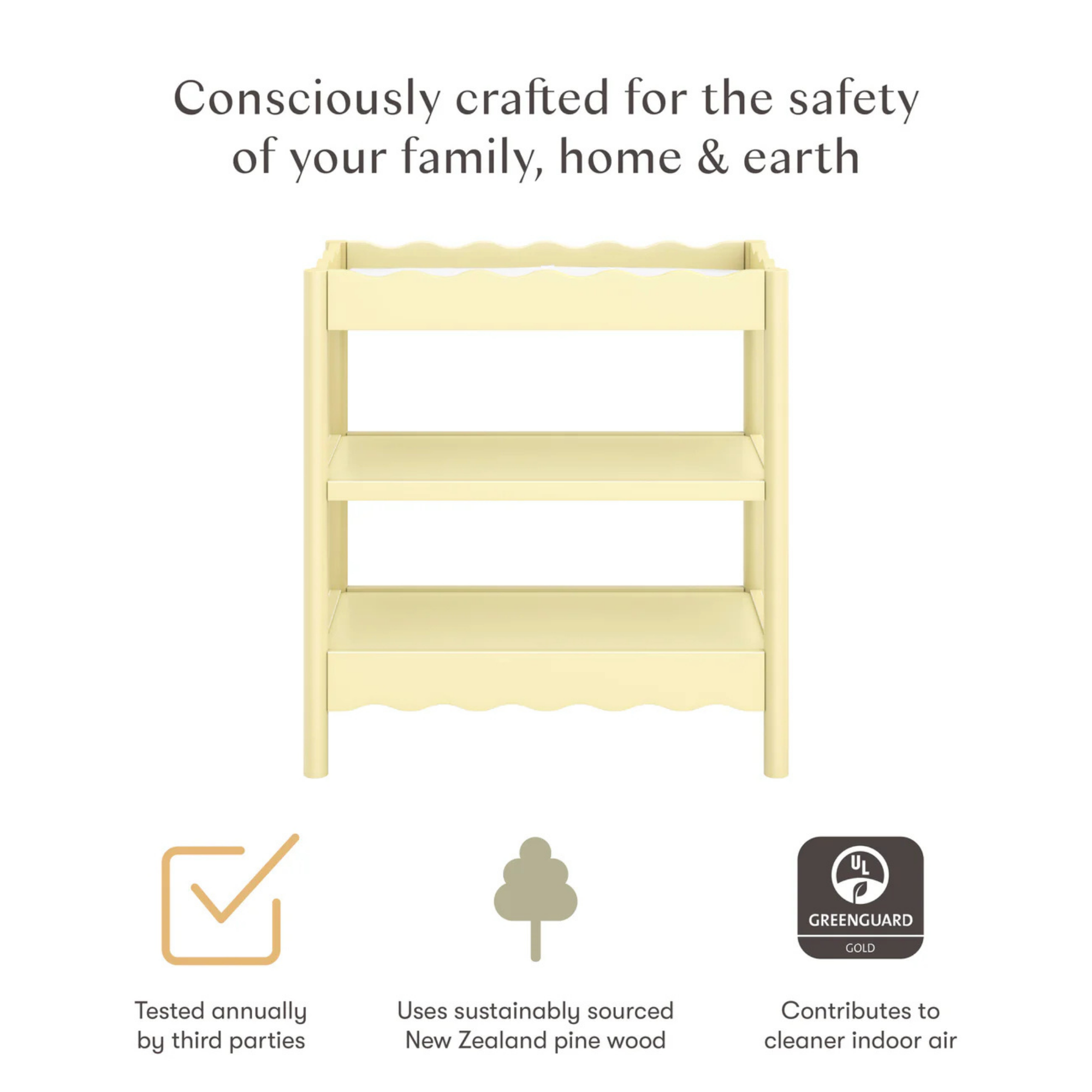 - SPACIOUS & DURABLE: The Swell changing table features 2 spacious shelves for all of your baby's precious belongings and diaper changing needs.