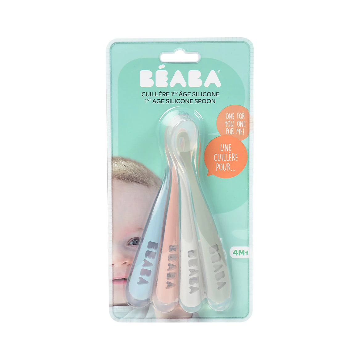 The BEABA Baby's First Foods Silicone Spoons Set is designed for babies being introduced to solids. While the handle is designed for adult hands to easily feed baby, the spoon is made of ultra-supple silicone to be kind on baby’s gums.