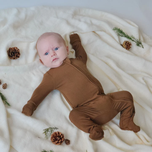 Footed sleeper made in soft bamboo rayon for the perfect night sleep. Bamboo is very breathable and moisture wicking which makes it the ideal fabric for infant sleepwear. 2-way zipper closure makes for easy diaper changes while fold over cuffs and chin guard keep baby safe from scratches and pinches.