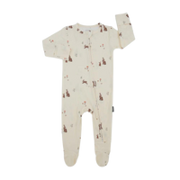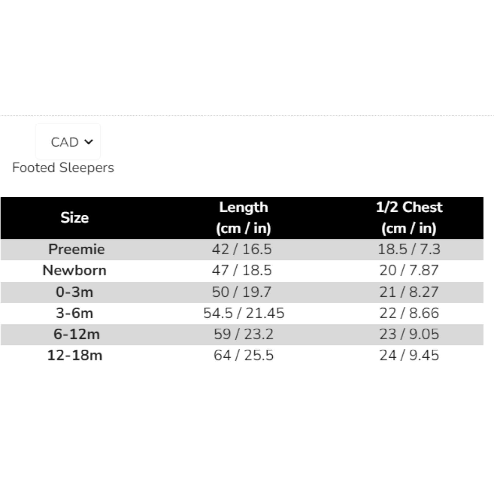Footed sleeper made in buttery soft bamboo rayon for the perfect night sleep. Bamboo is very breathable and moisture wicking which makes it the ideal fabric for infant sleepwear. 2-way zipper closure makes for easy diaper changes while fold over cuffs* and chin guard keep baby safe from scratches and pinches. Sizes 6-12M & 12-18M have silicone grippers on soles to prevent slipping.